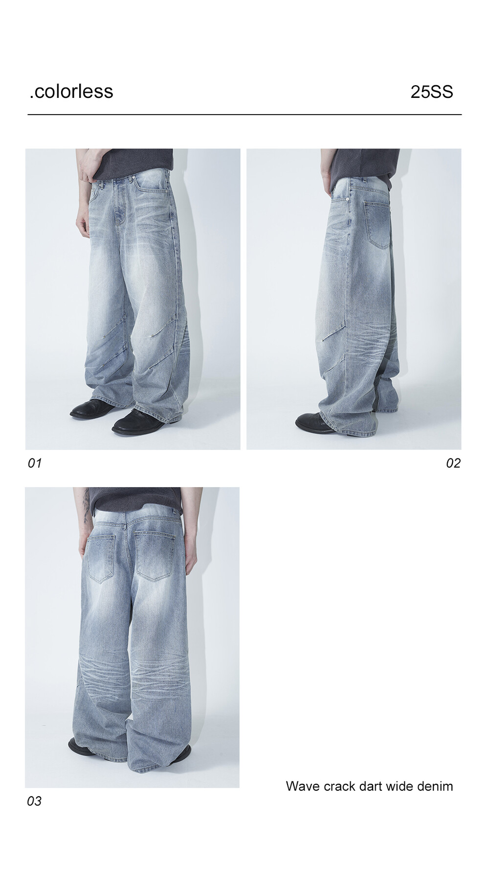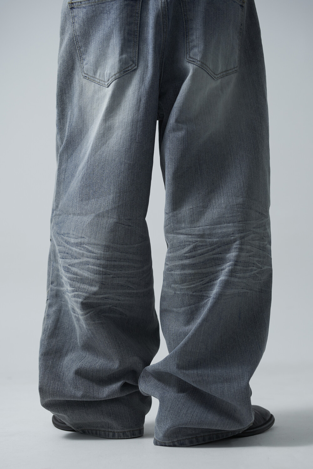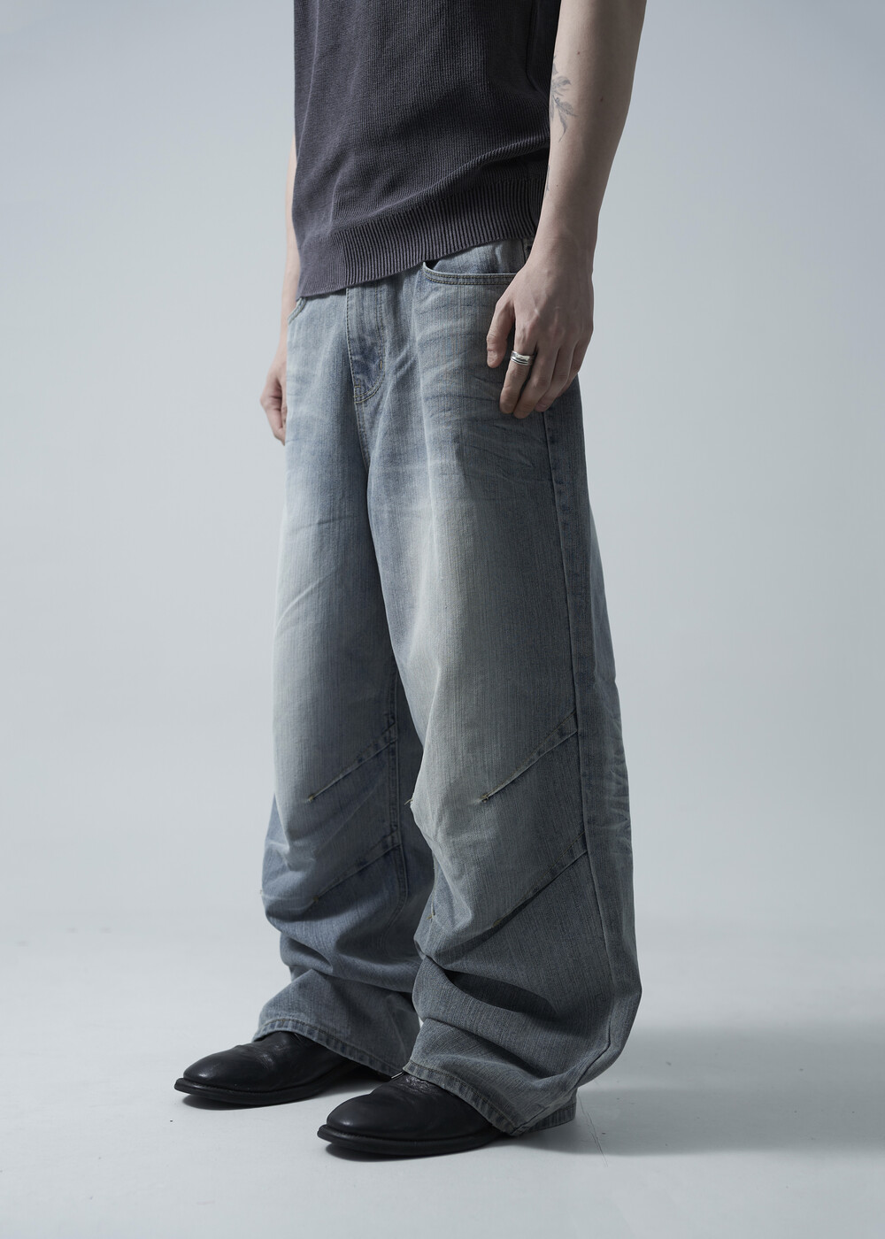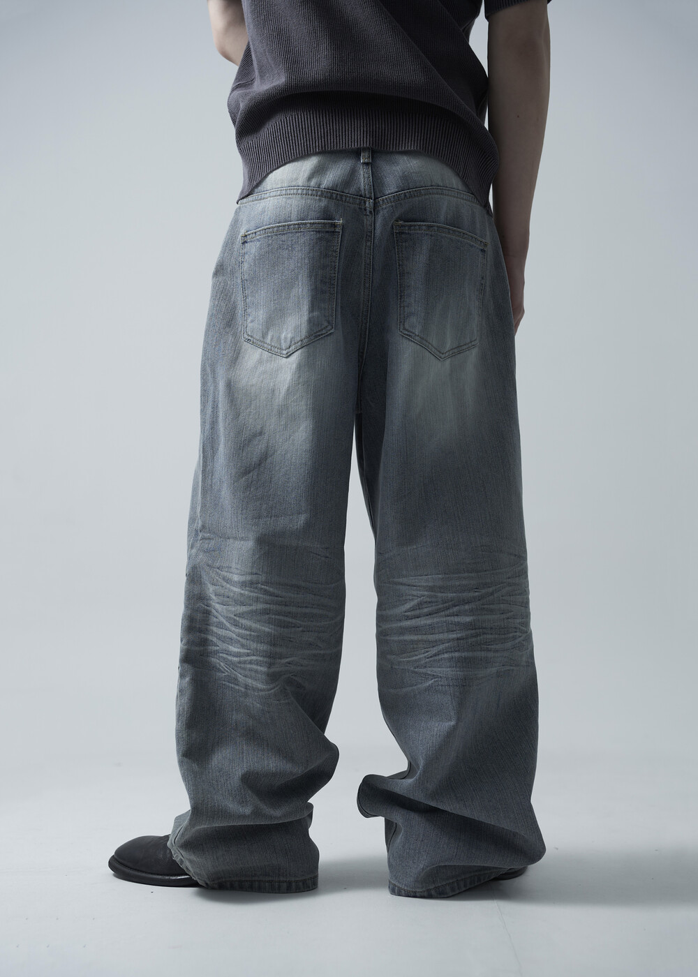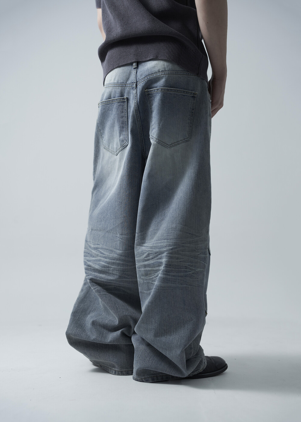 사선으로 깊이 들어오는 다트 디테일이 매력적인 그레이 컬러감의 벌룬 와이드 데님 제품입니다. 전-후면부의 물결과 같은 디테일이 트렌디하게 적용되었으며, 여유로운 벌룬와이드 실루엣을 연출합니다.