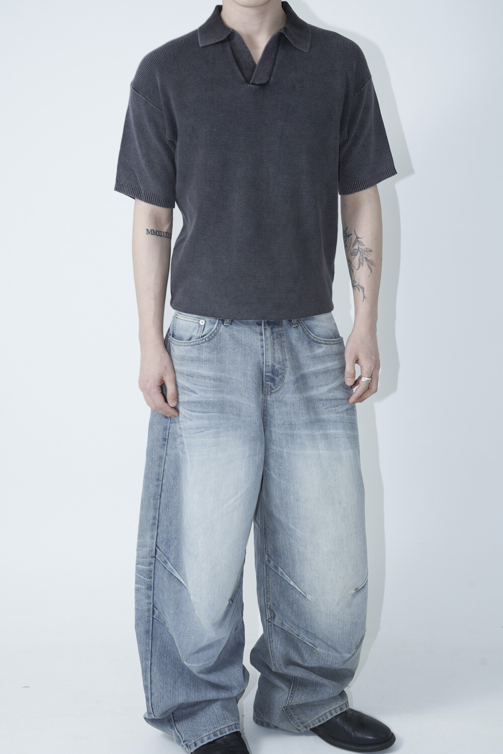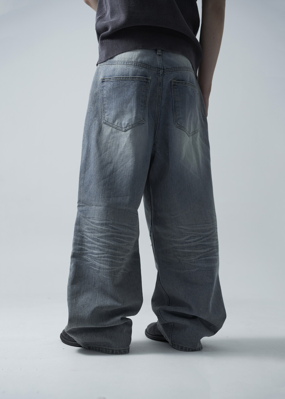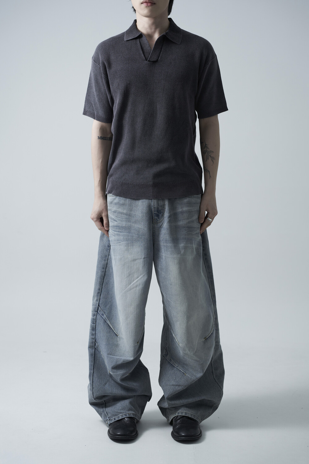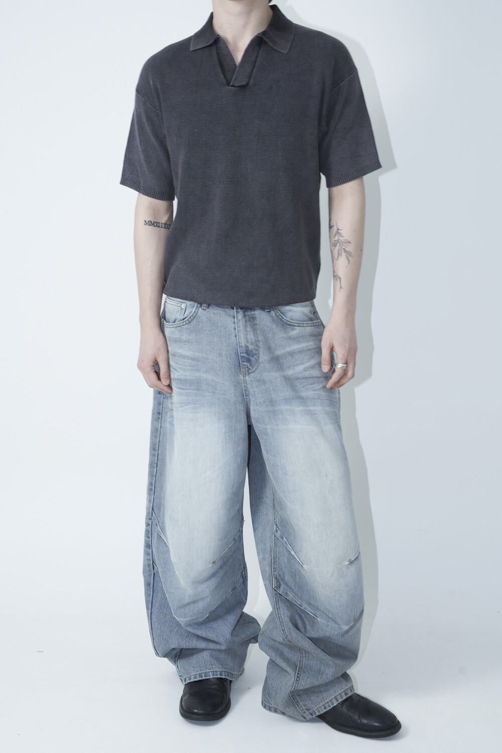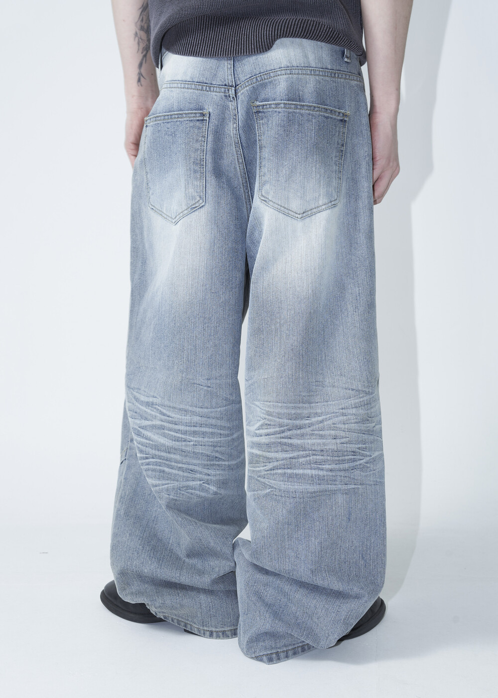 사선으로 깊이 들어오는 다트 디테일이 매력적인 그레이 컬러감의 벌룬 와이드 데님 제품입니다. 전-후면부의 물결과 같은 디테일이 트렌디하게 적용되었으며, 여유로운 벌룬와이드 실루엣을 연출합니다.