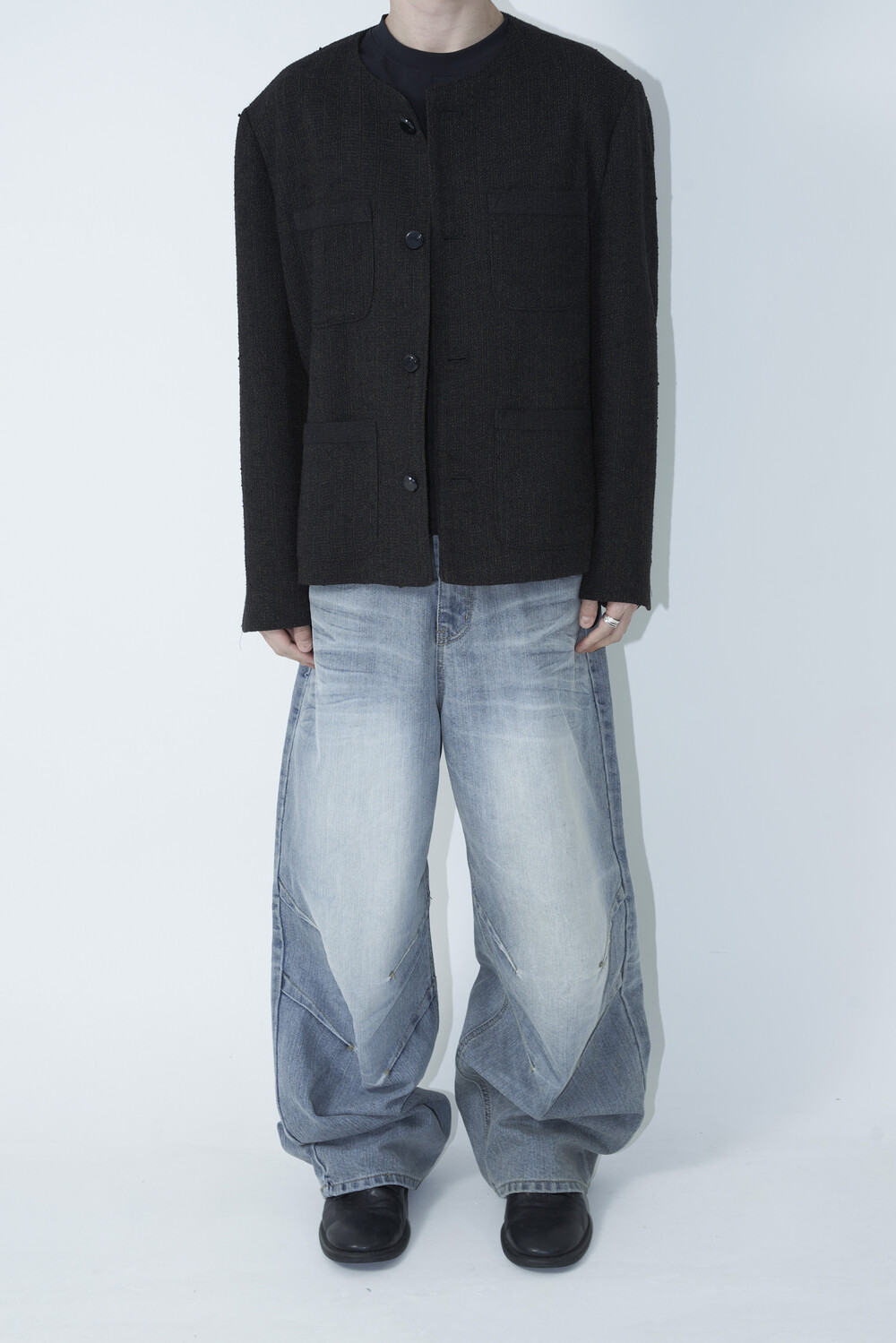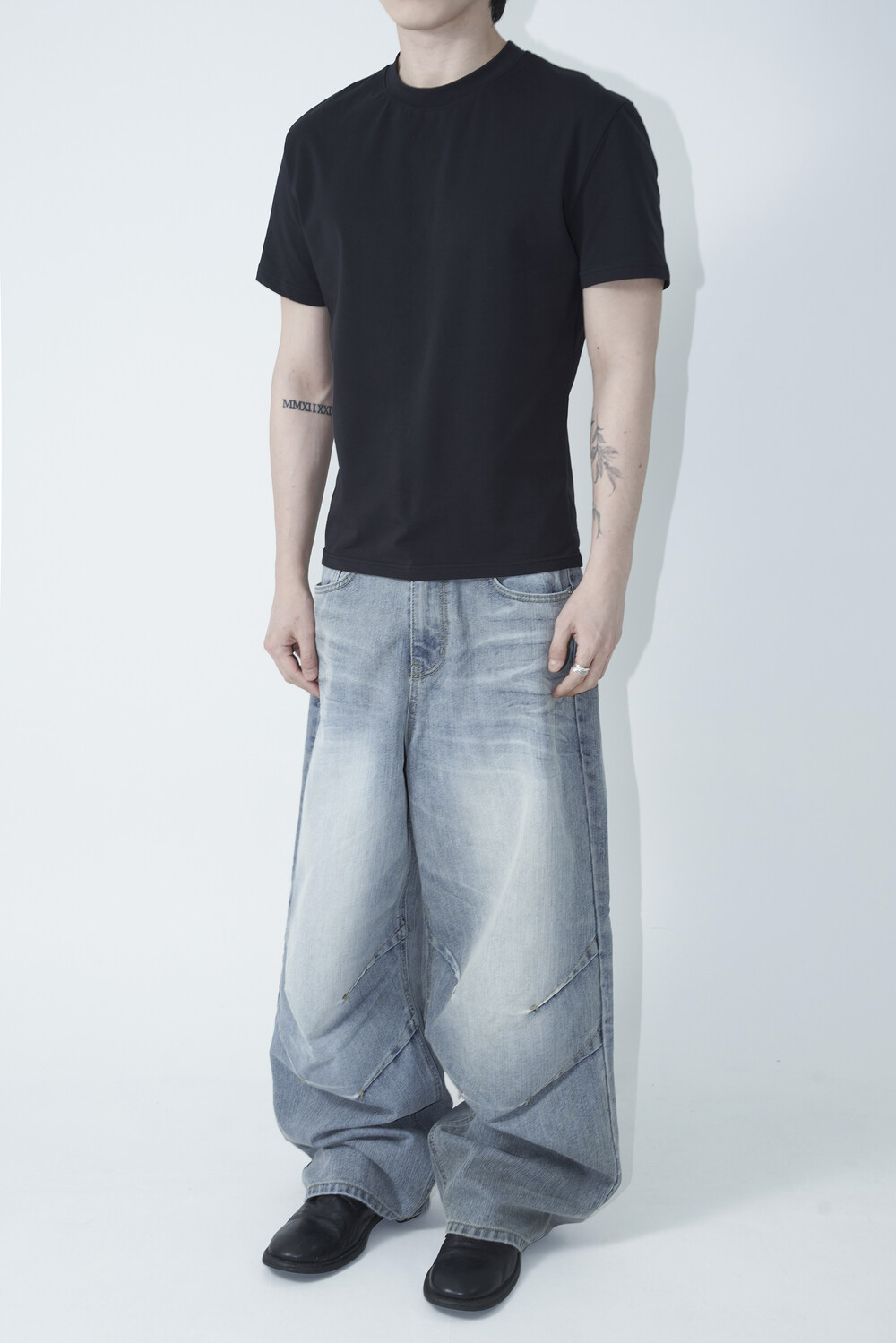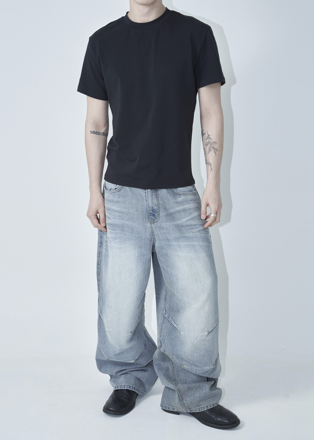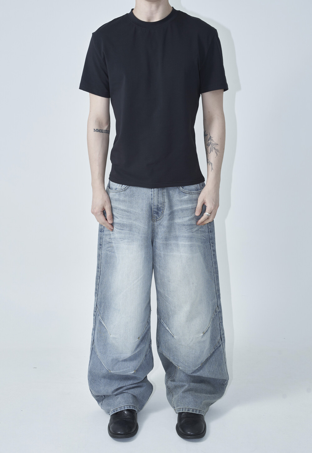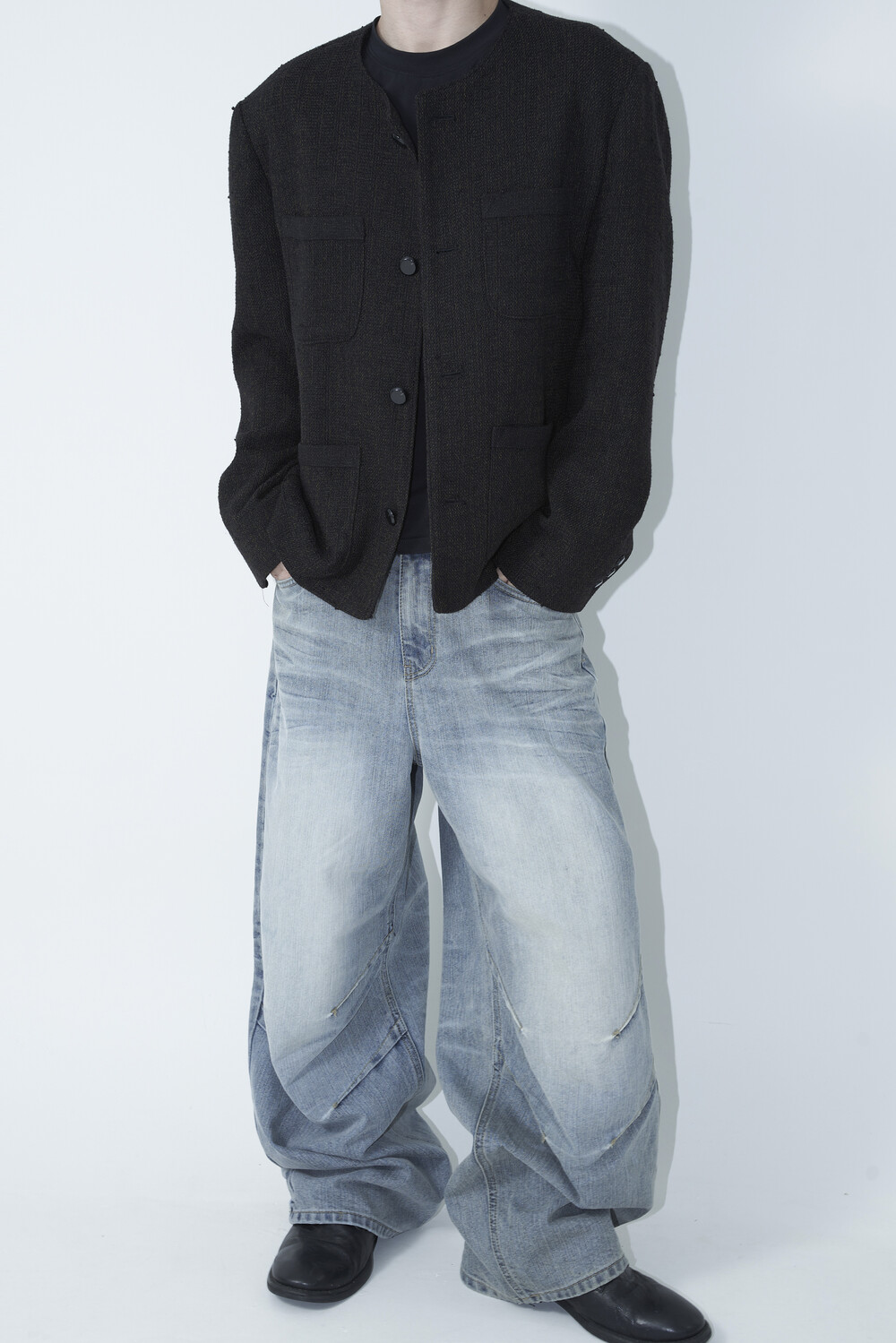 사선으로 깊이 들어오는 다트 디테일이 매력적인 그레이 컬러감의 벌룬 와이드 데님 제품입니다. 전-후면부의 물결과 같은 디테일이 트렌디하게 적용되었으며, 여유로운 벌룬와이드 실루엣을 연출합니다.