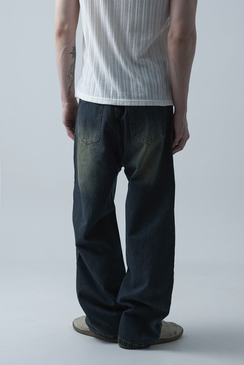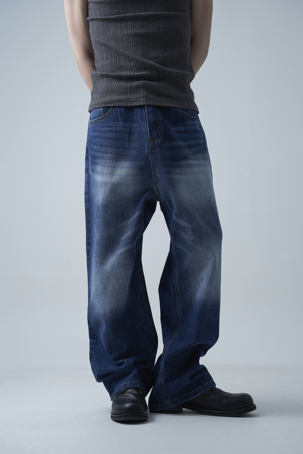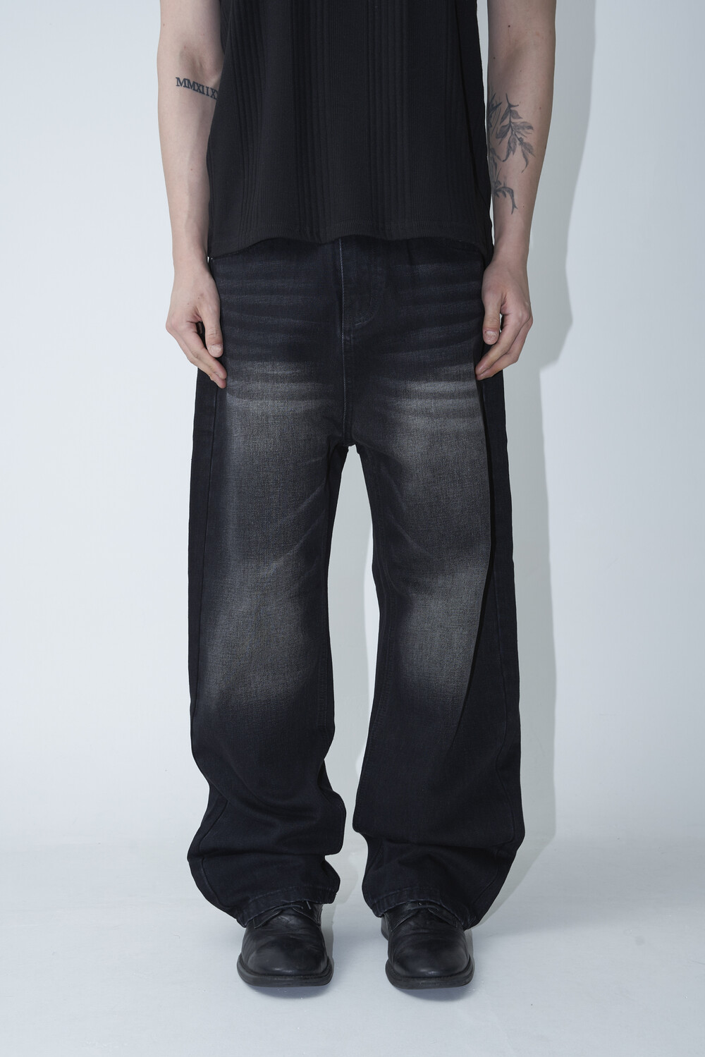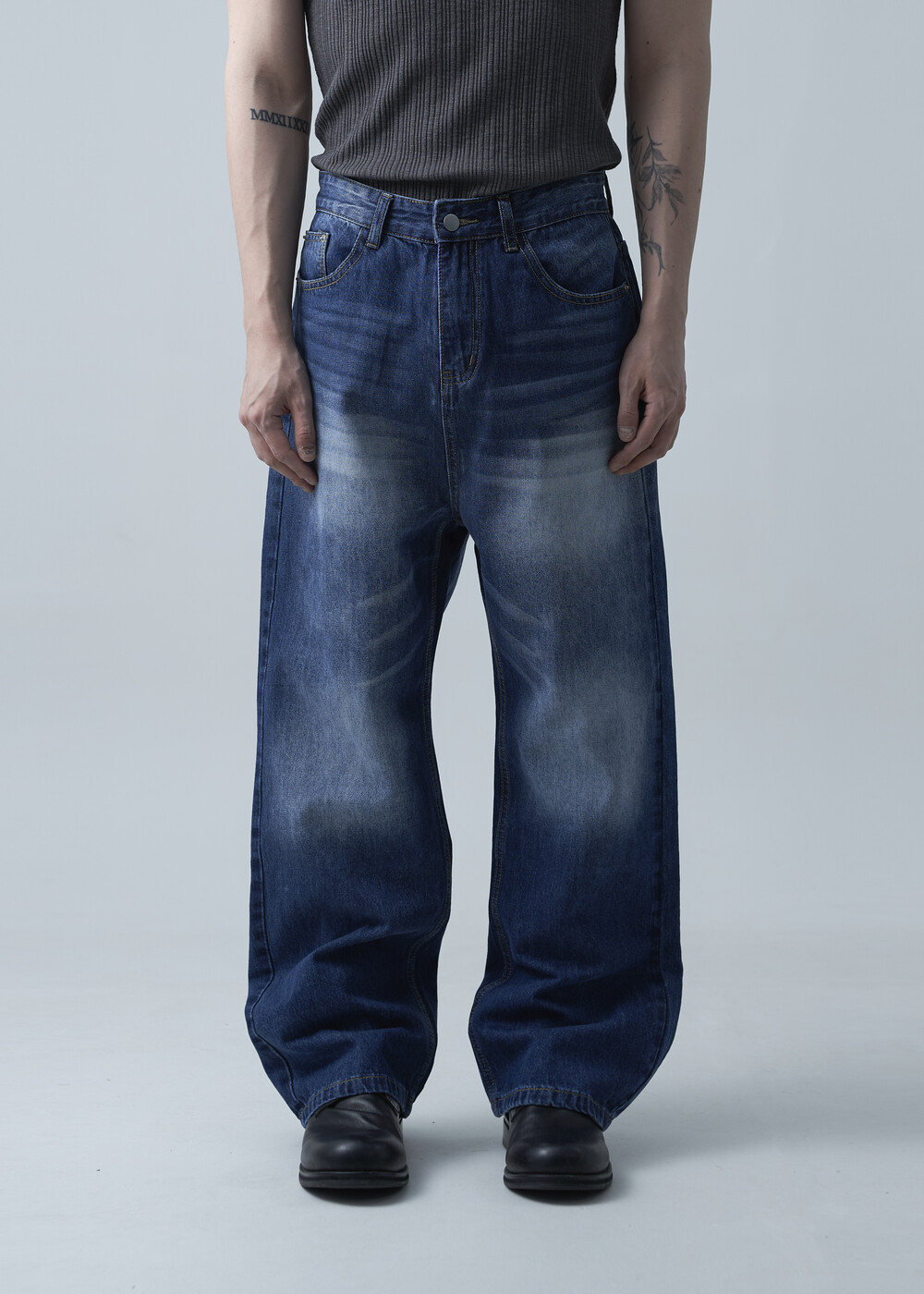 하이라이트 캣워싱이 가미된 안정적인 와이드 핏 데님 팬츠 제품으로, 캐쥬얼한 일상 속에서 데일리하게 착용하실 수 있는 제품입니다. 유니크한 워싱컬러감을 느껴보세요.