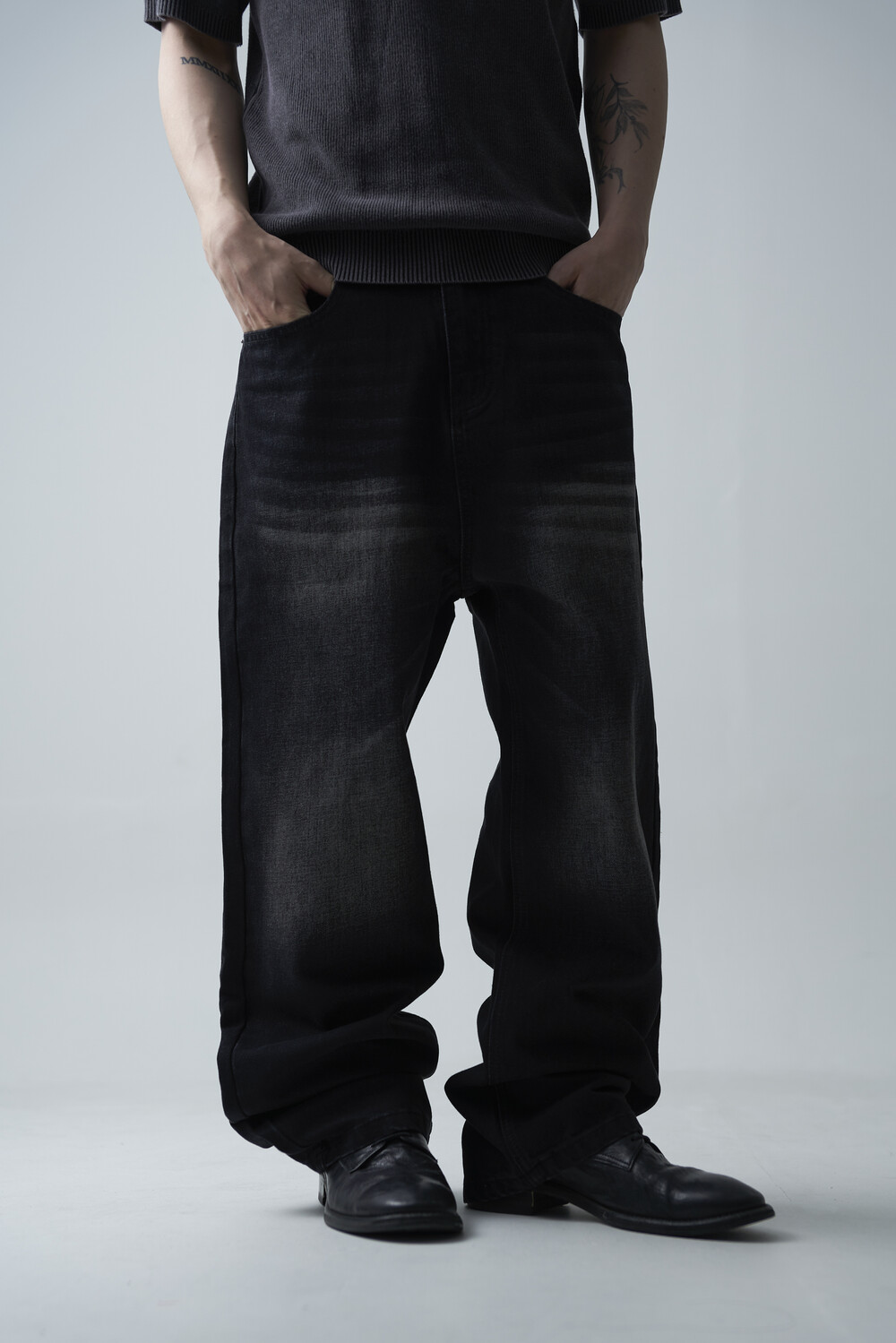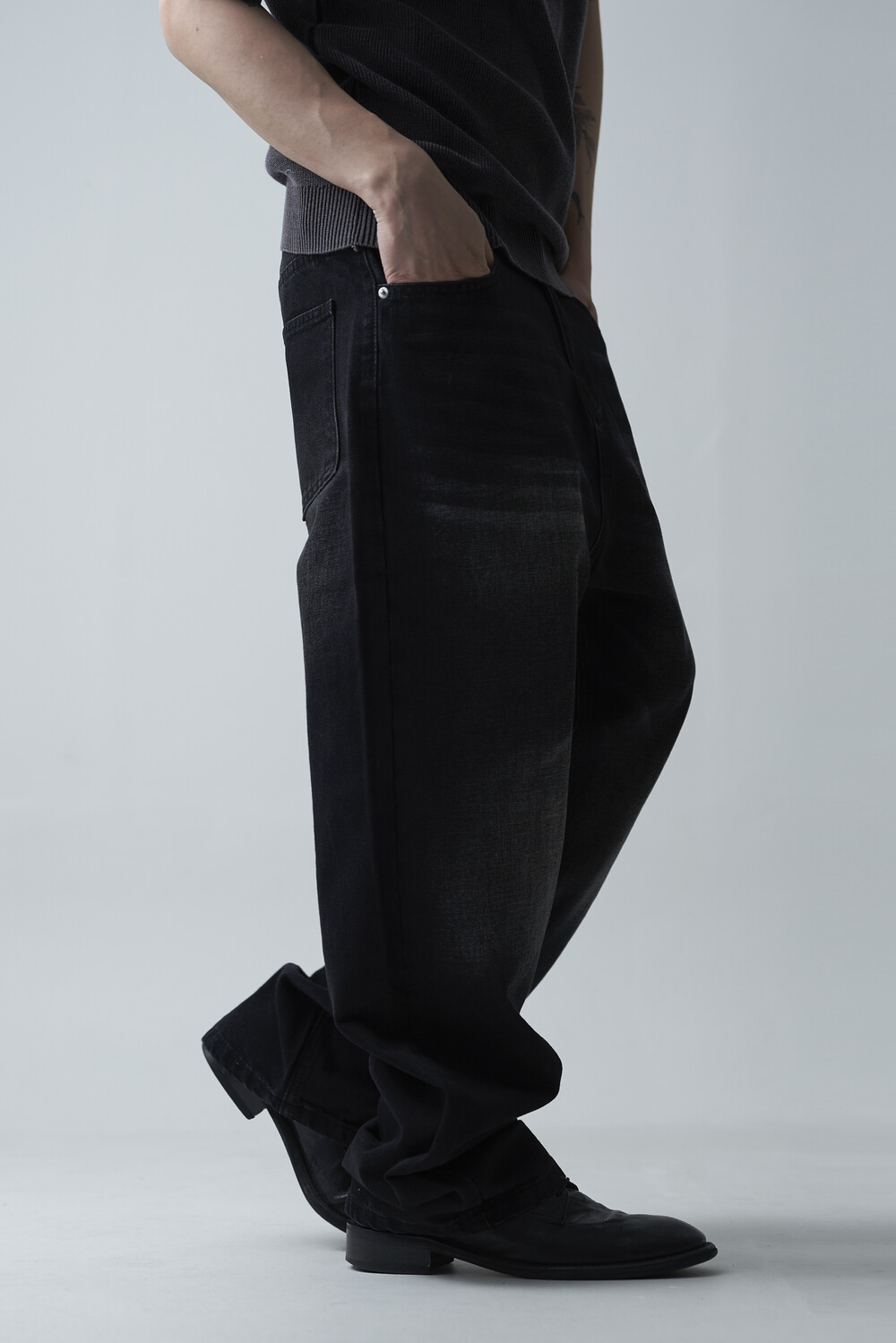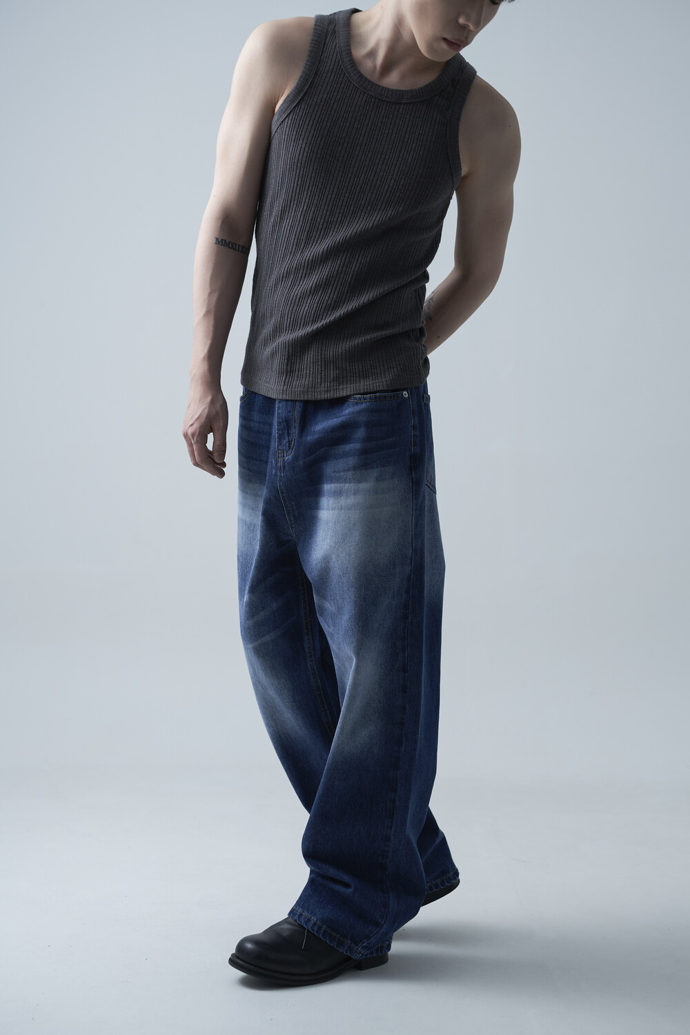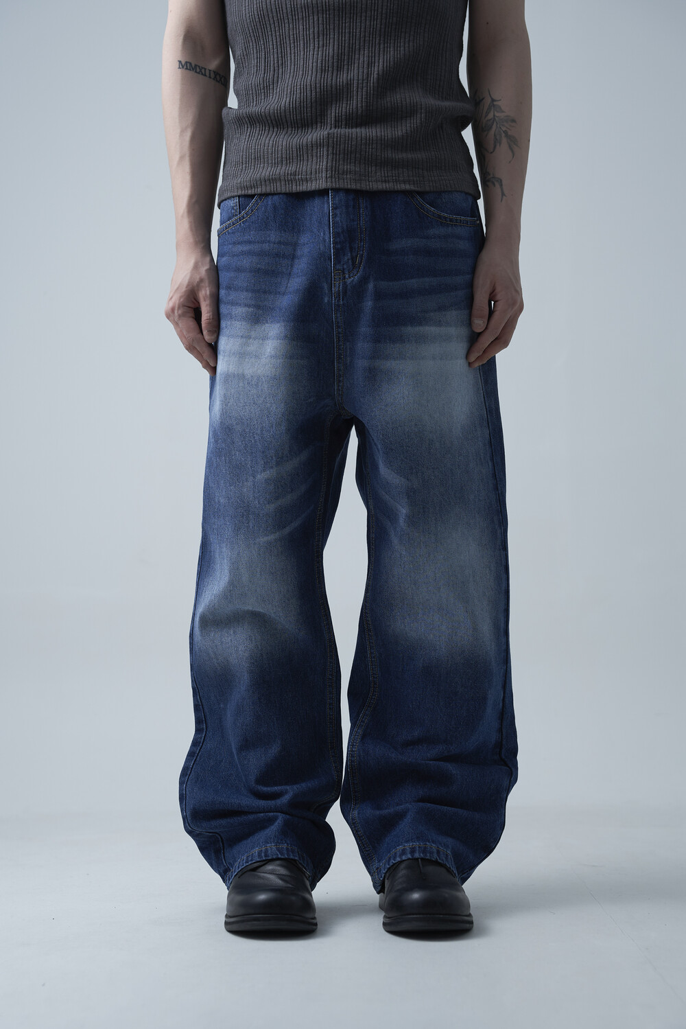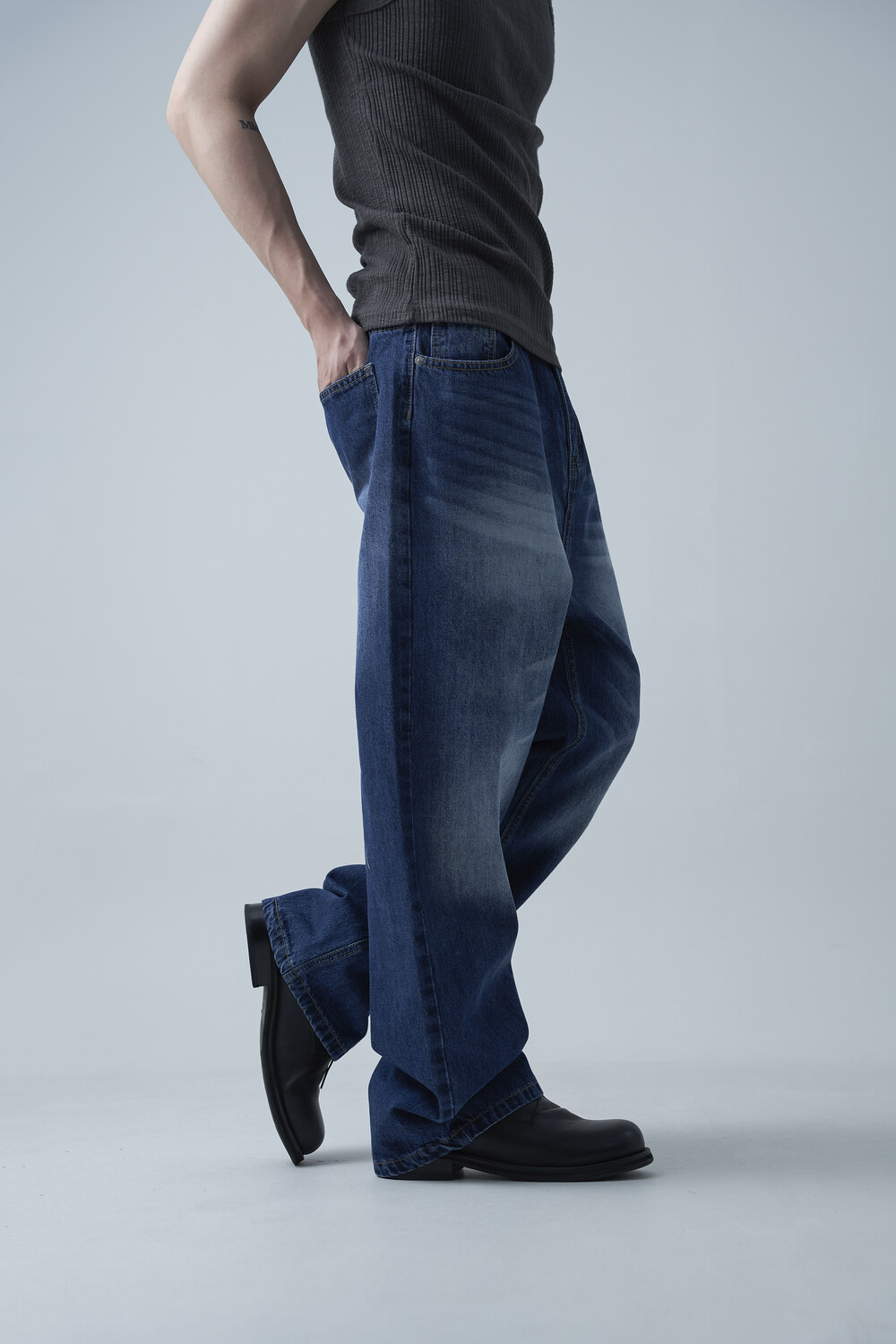 하이라이트 캣워싱이 가미된 안정적인 와이드 핏 데님 팬츠 제품으로, 캐쥬얼한 일상 속에서 데일리하게 착용하실 수 있는 제품입니다. 유니크한 워싱컬러감을 느껴보세요.