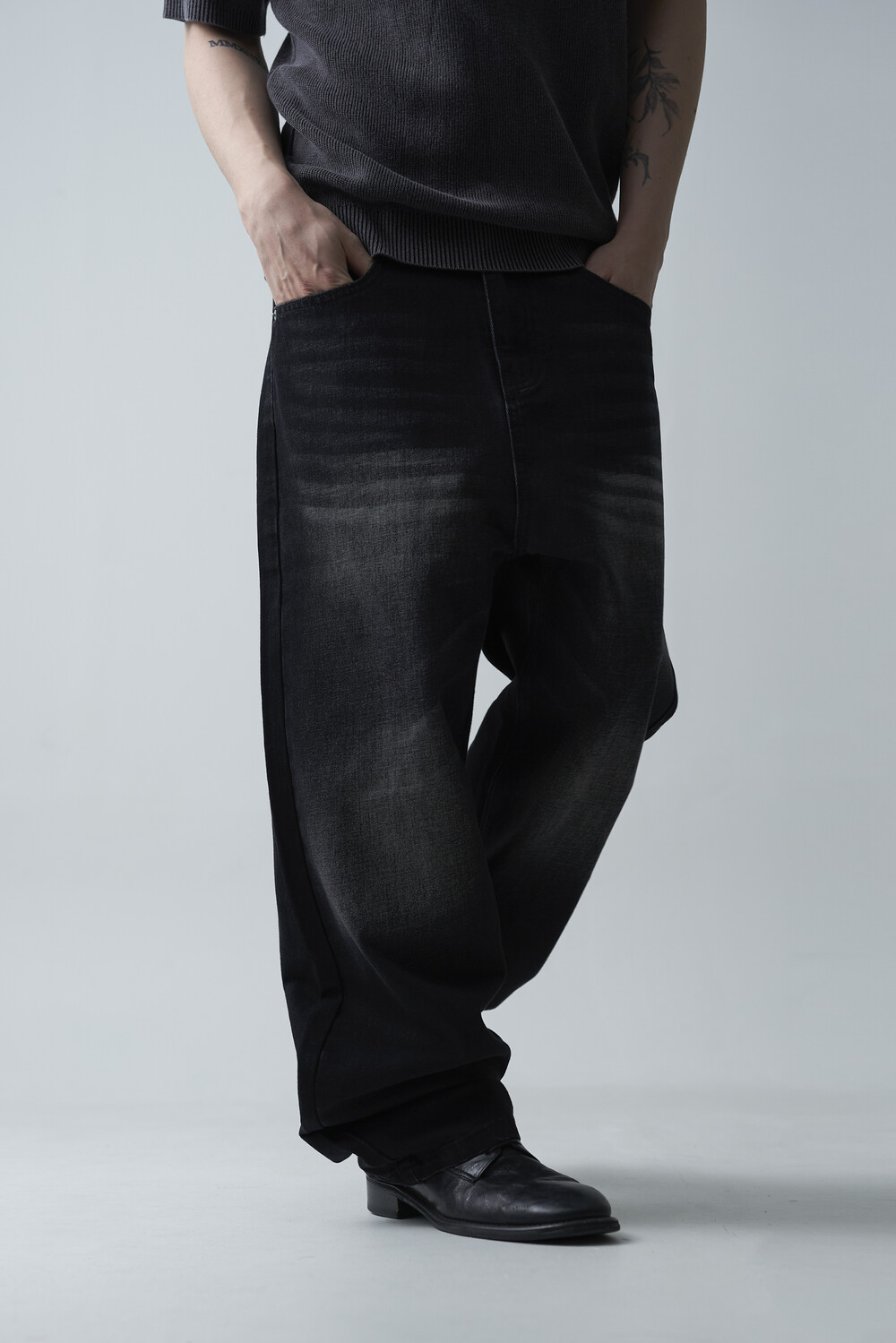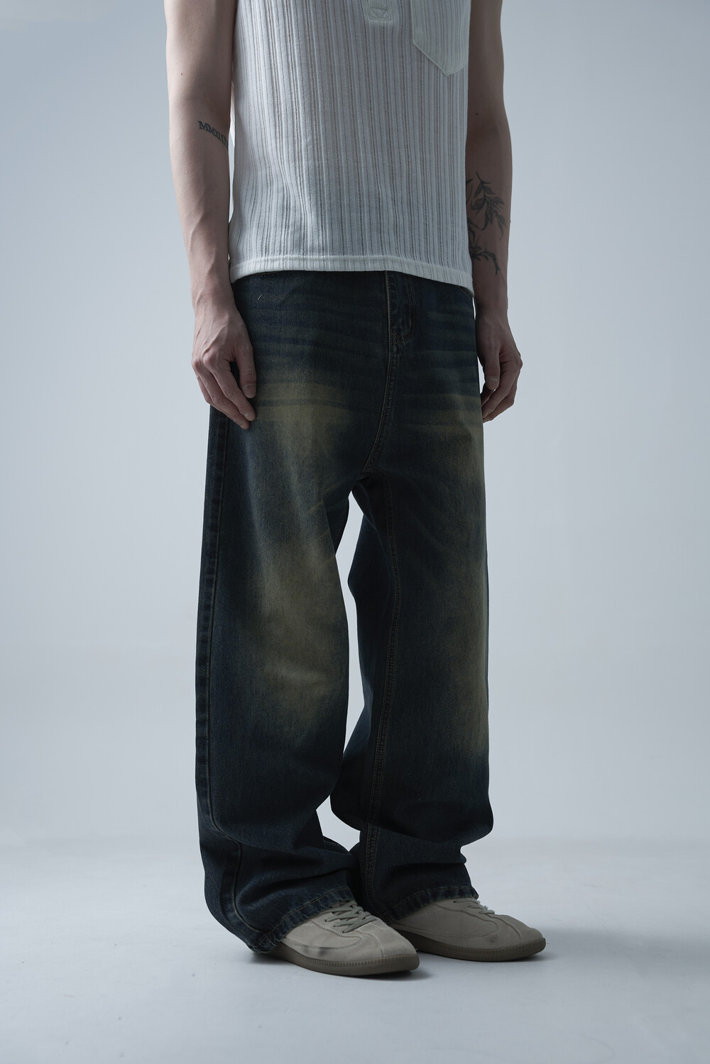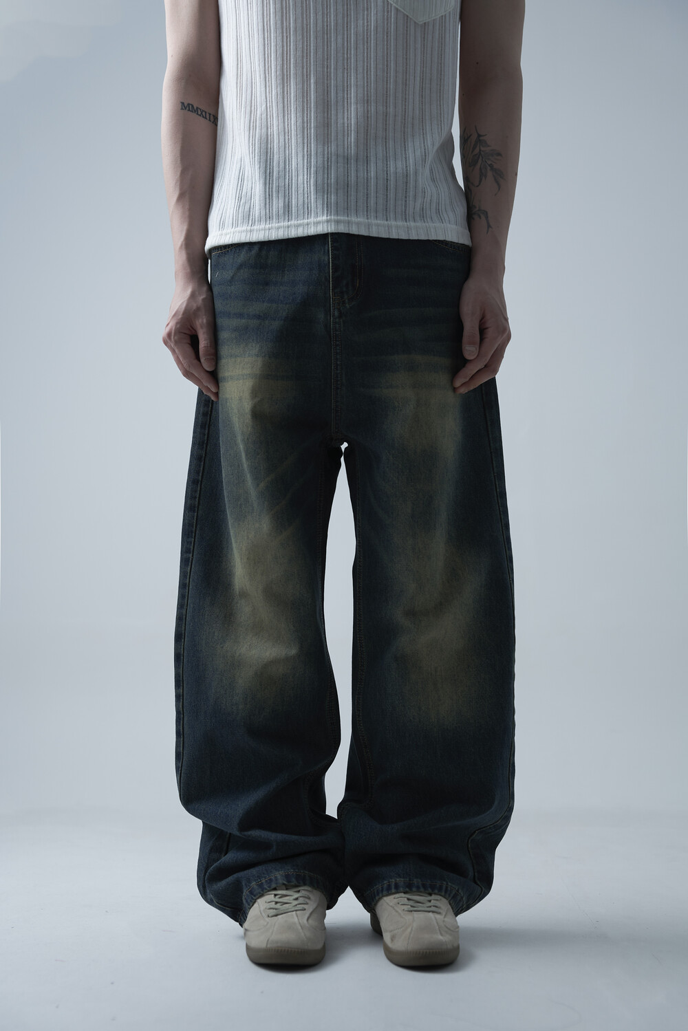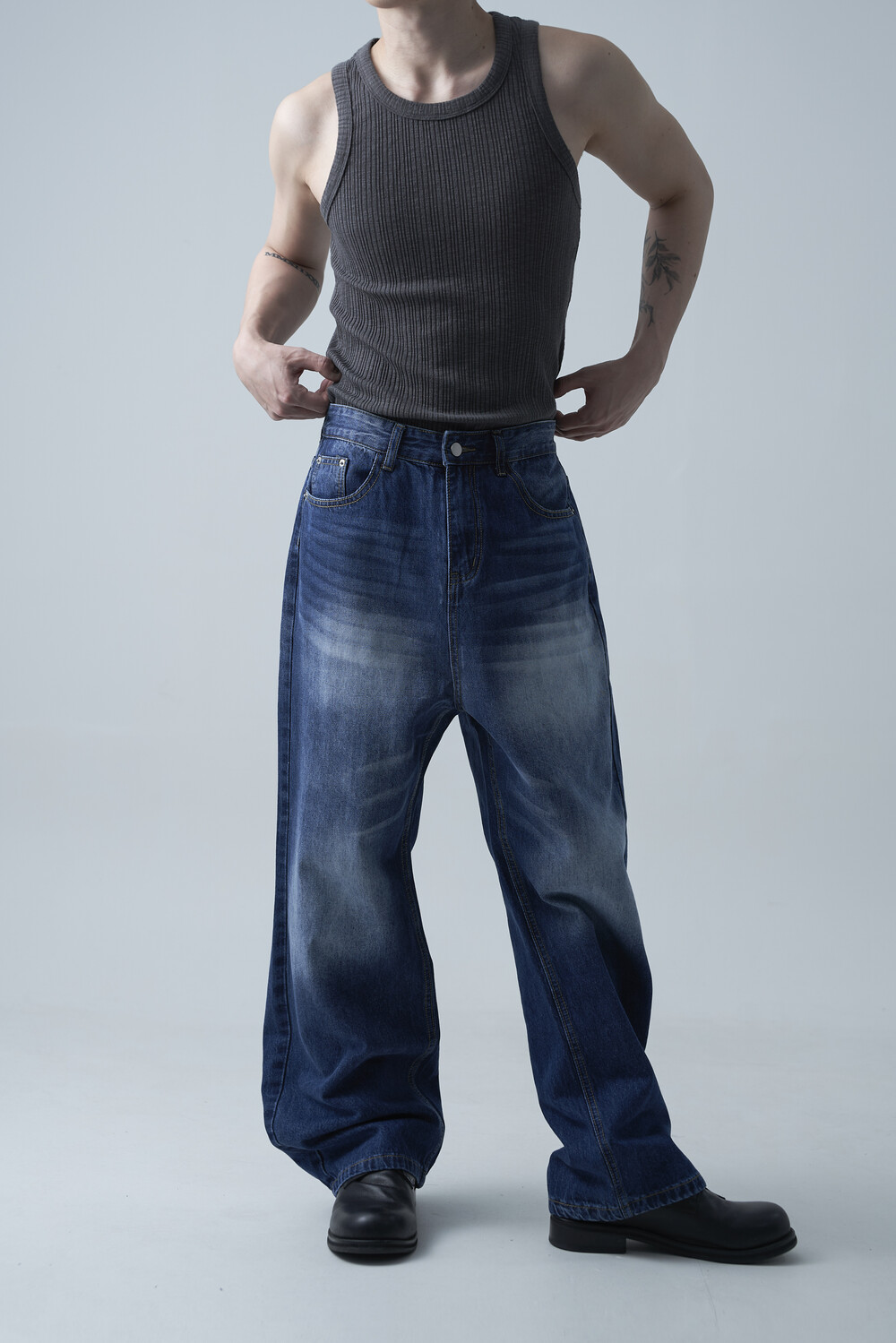 하이라이트 캣워싱이 가미된 안정적인 와이드 핏 데님 팬츠 제품으로, 캐쥬얼한 일상 속에서 데일리하게 착용하실 수 있는 제품입니다. 유니크한 워싱컬러감을 느껴보세요.