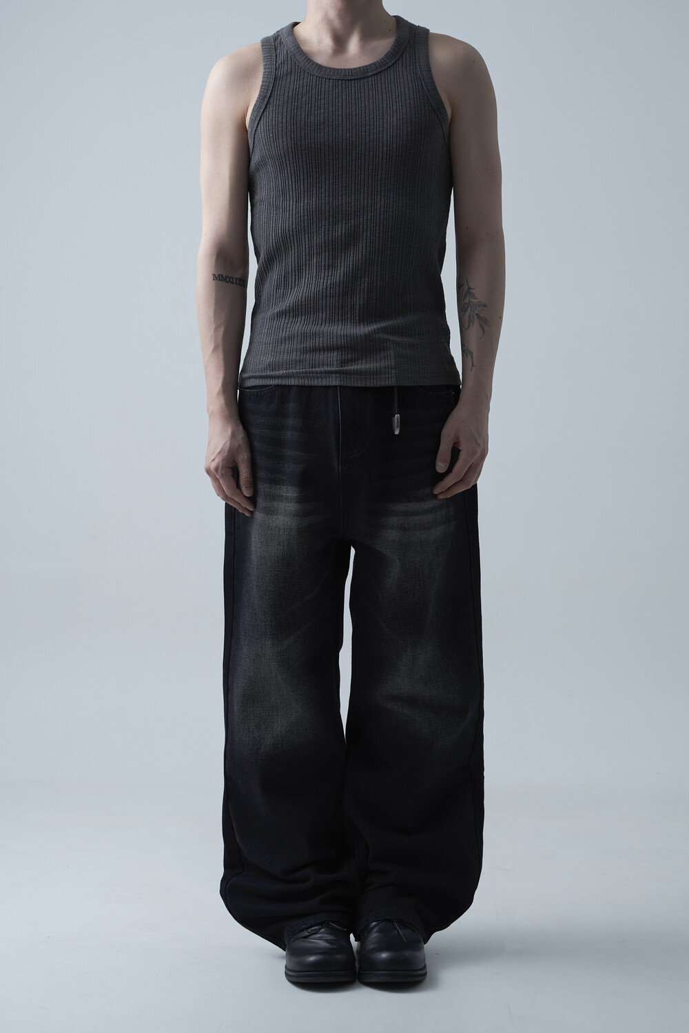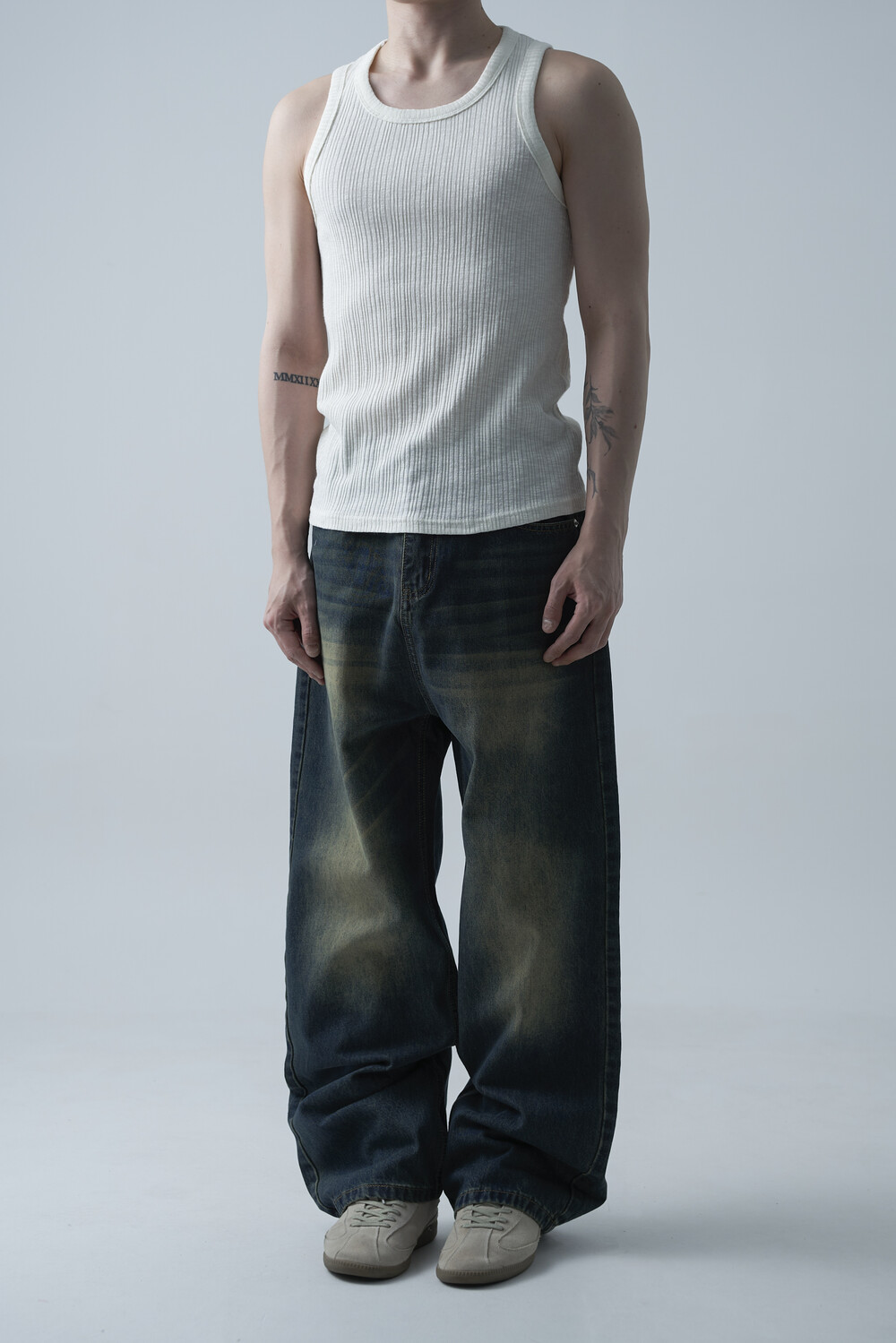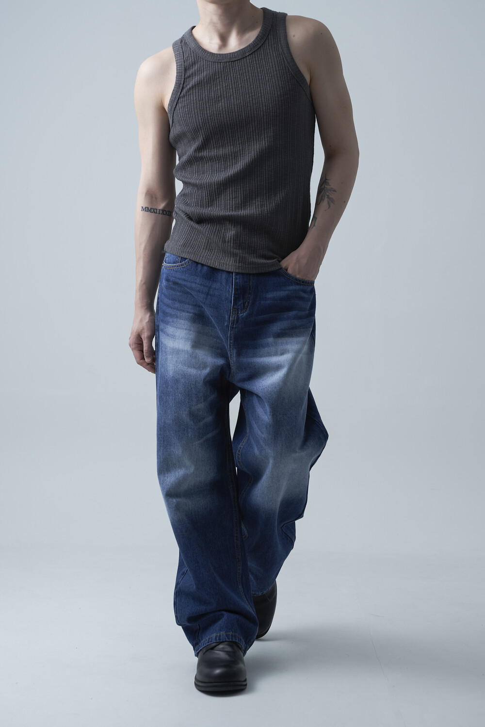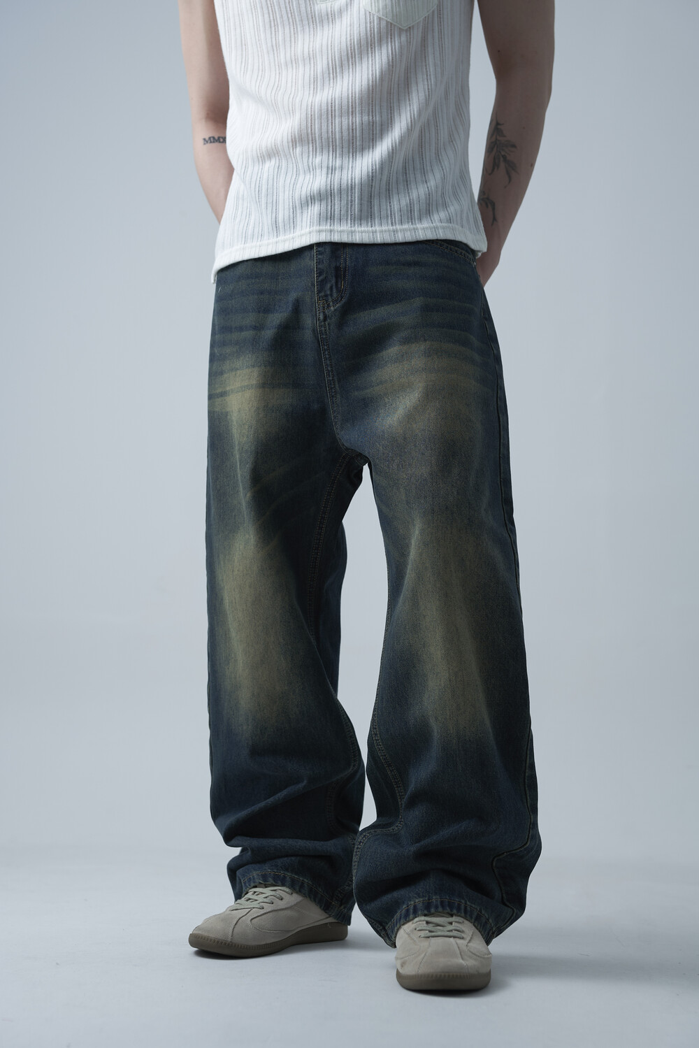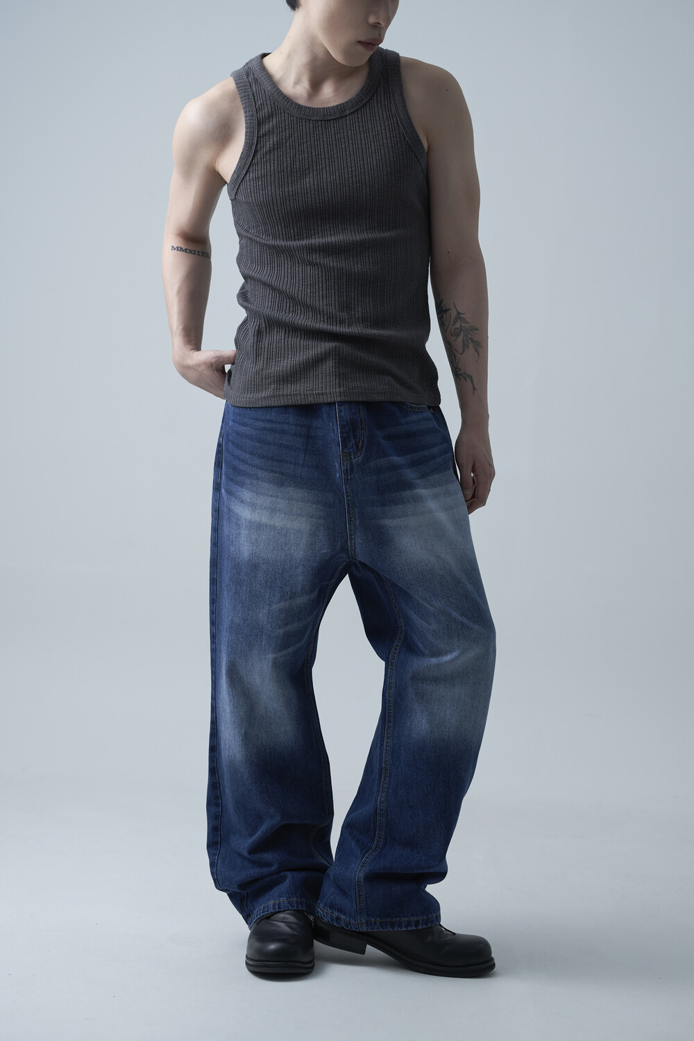 하이라이트 캣워싱이 가미된 안정적인 와이드 핏 데님 팬츠 제품으로, 캐쥬얼한 일상 속에서 데일리하게 착용하실 수 있는 제품입니다. 유니크한 워싱컬러감을 느껴보세요.