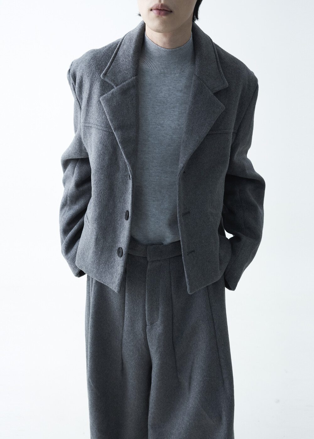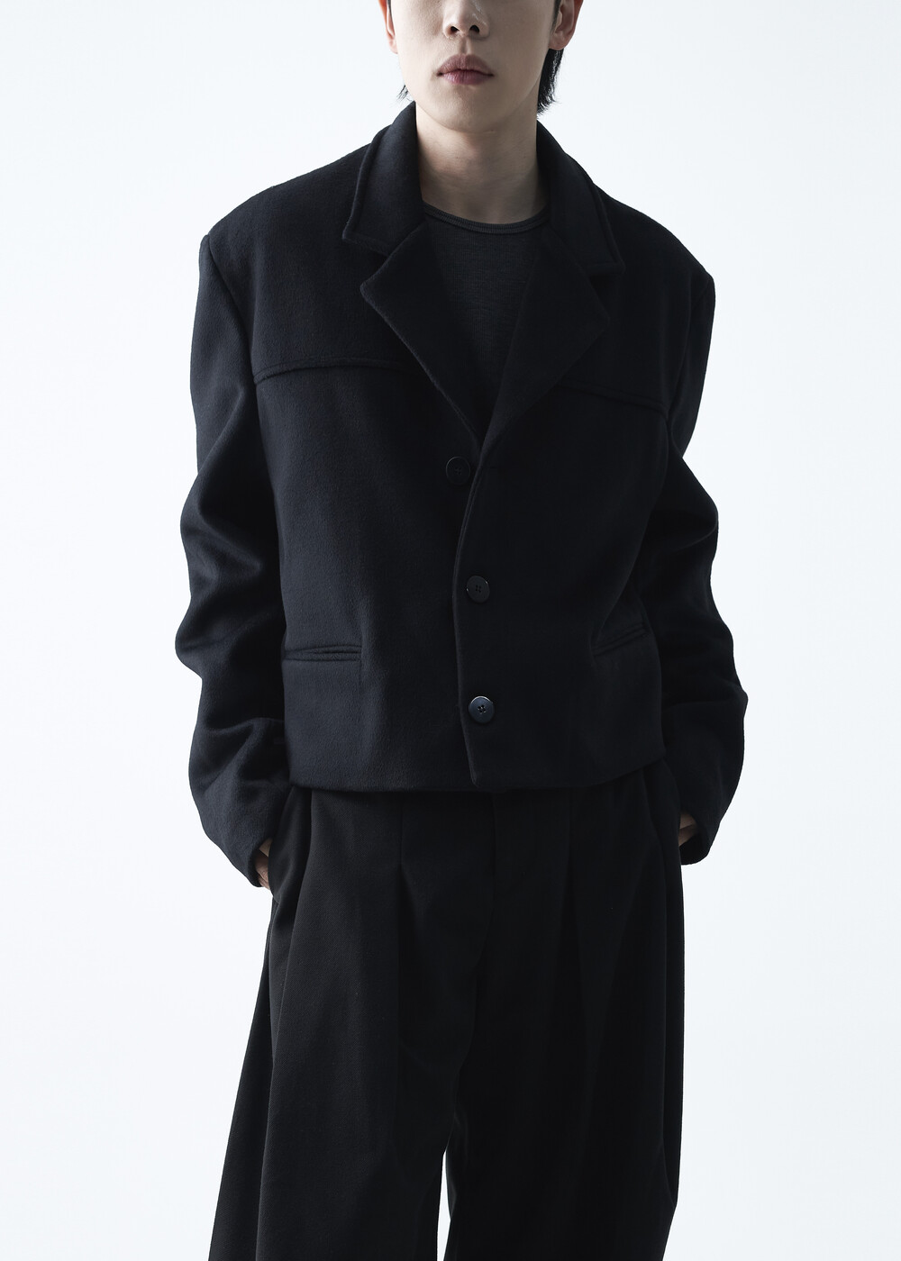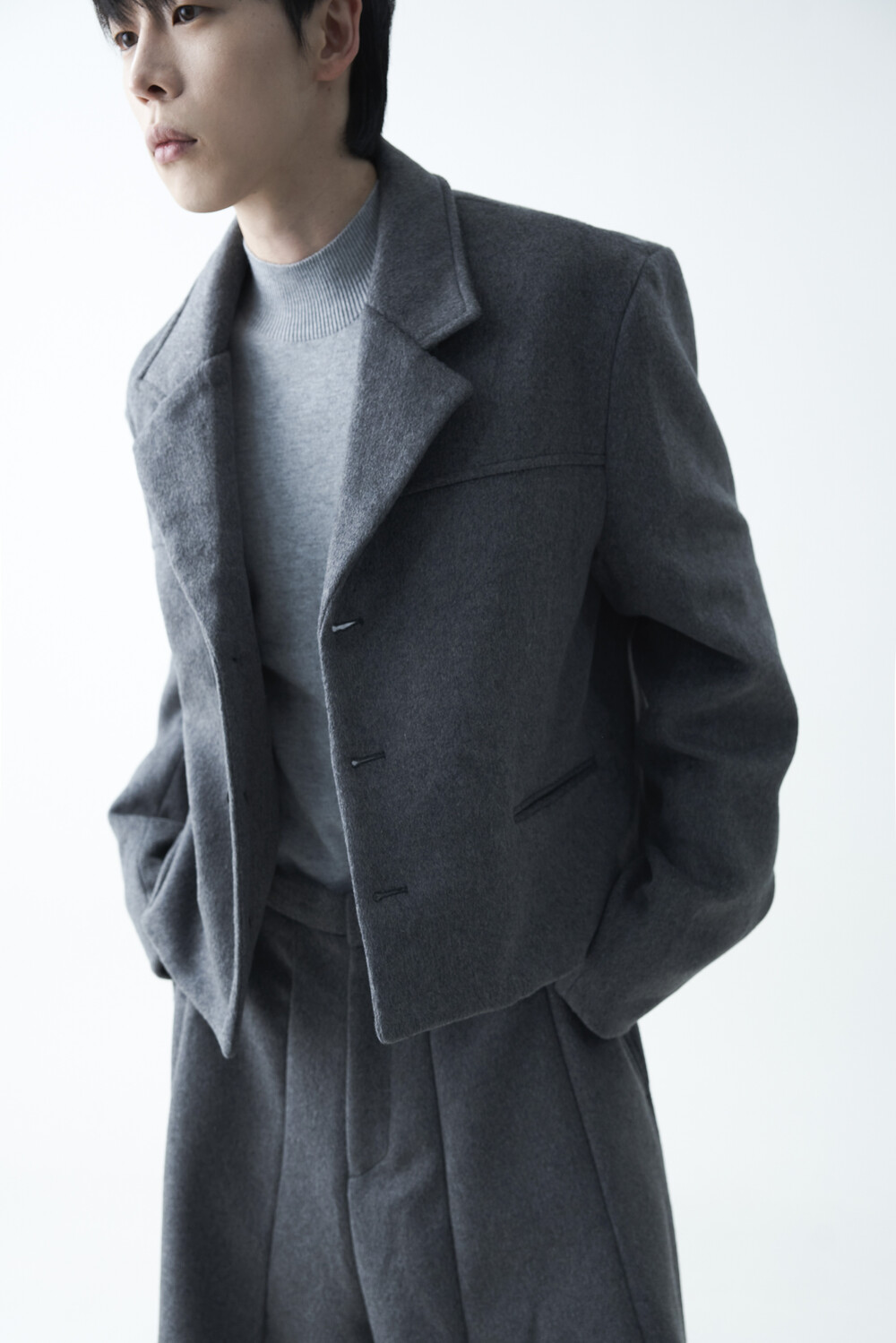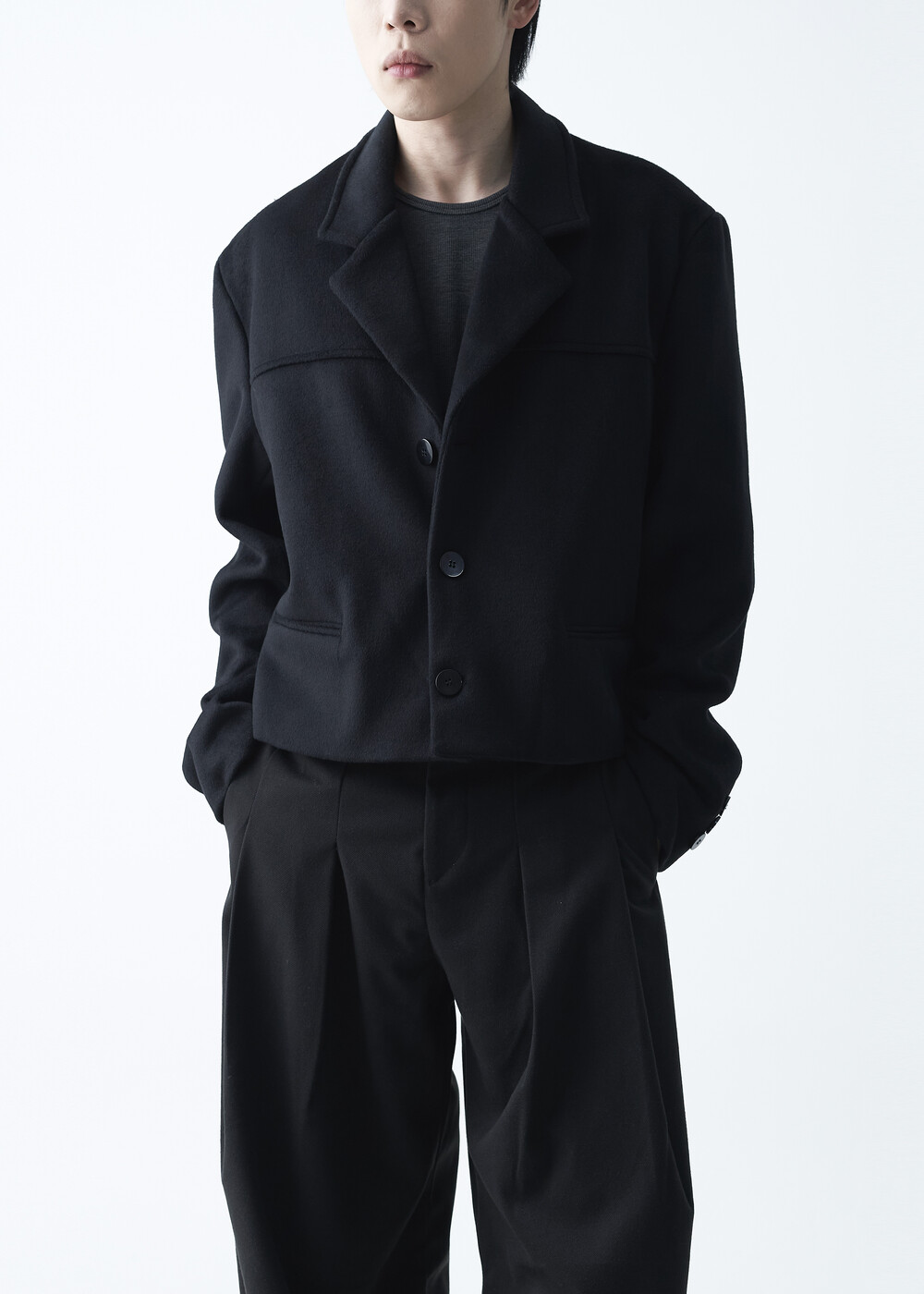 - 크롭한 기장감으로 젠더리스한 매력을 느끼실 수 있는 울 자켓 제품입니다. 동일한 소재감의 슬렉스로 셋업 코디를 하실 수도 있고 여러 팬츠들과 자연스러운 매치가 가능합니다.
