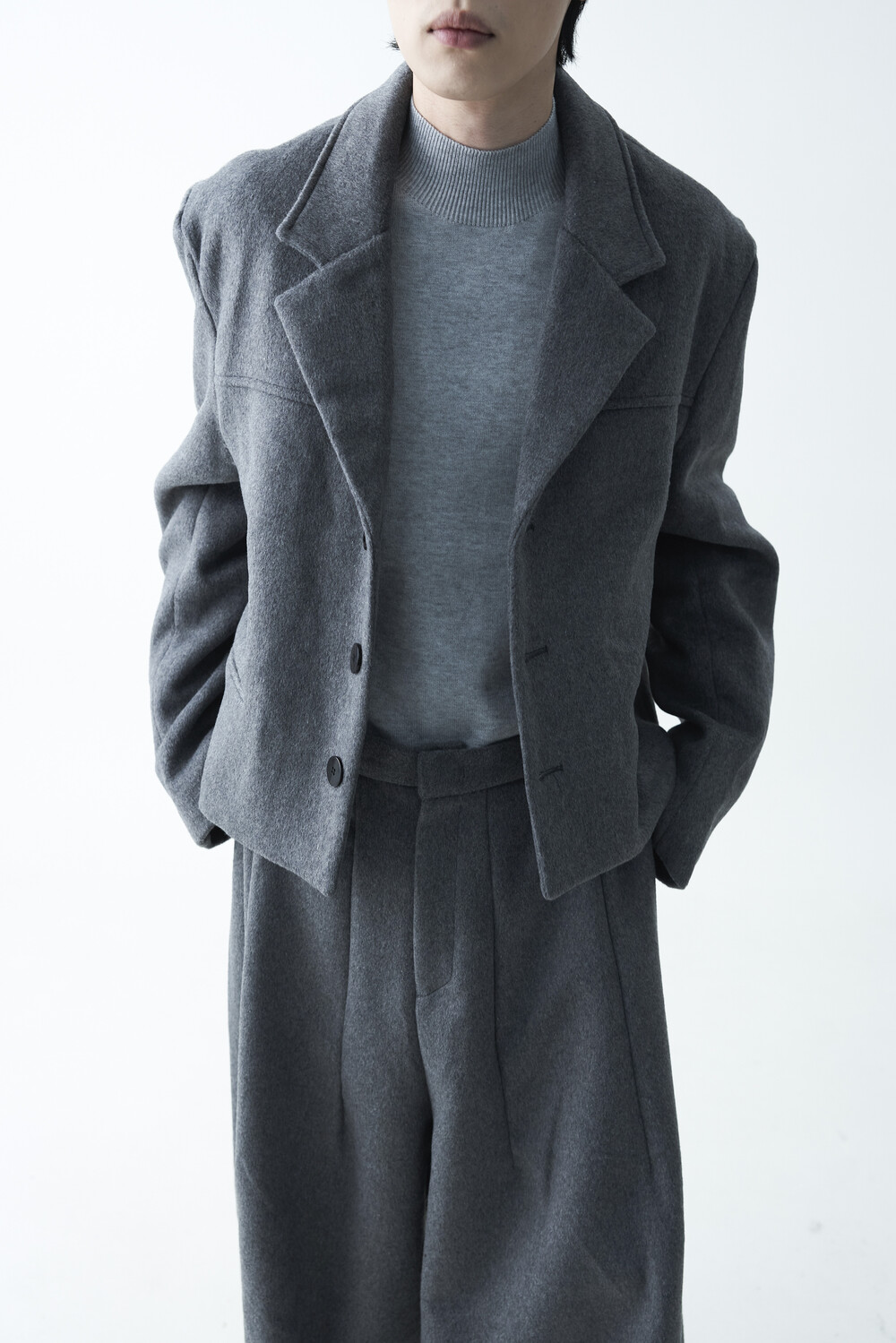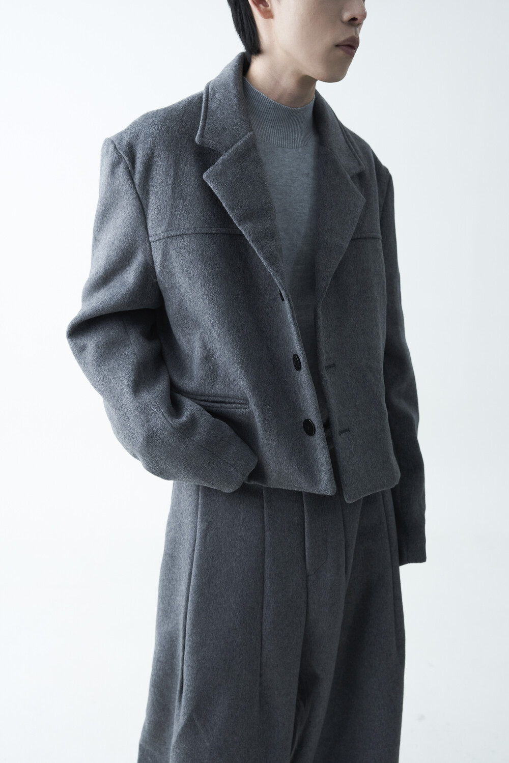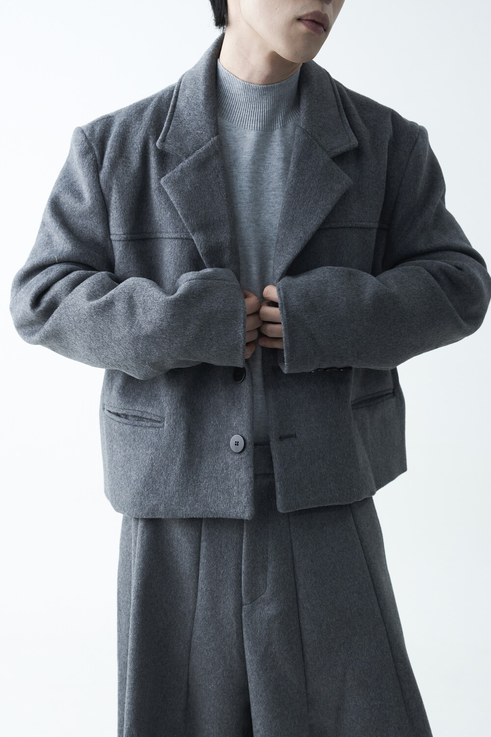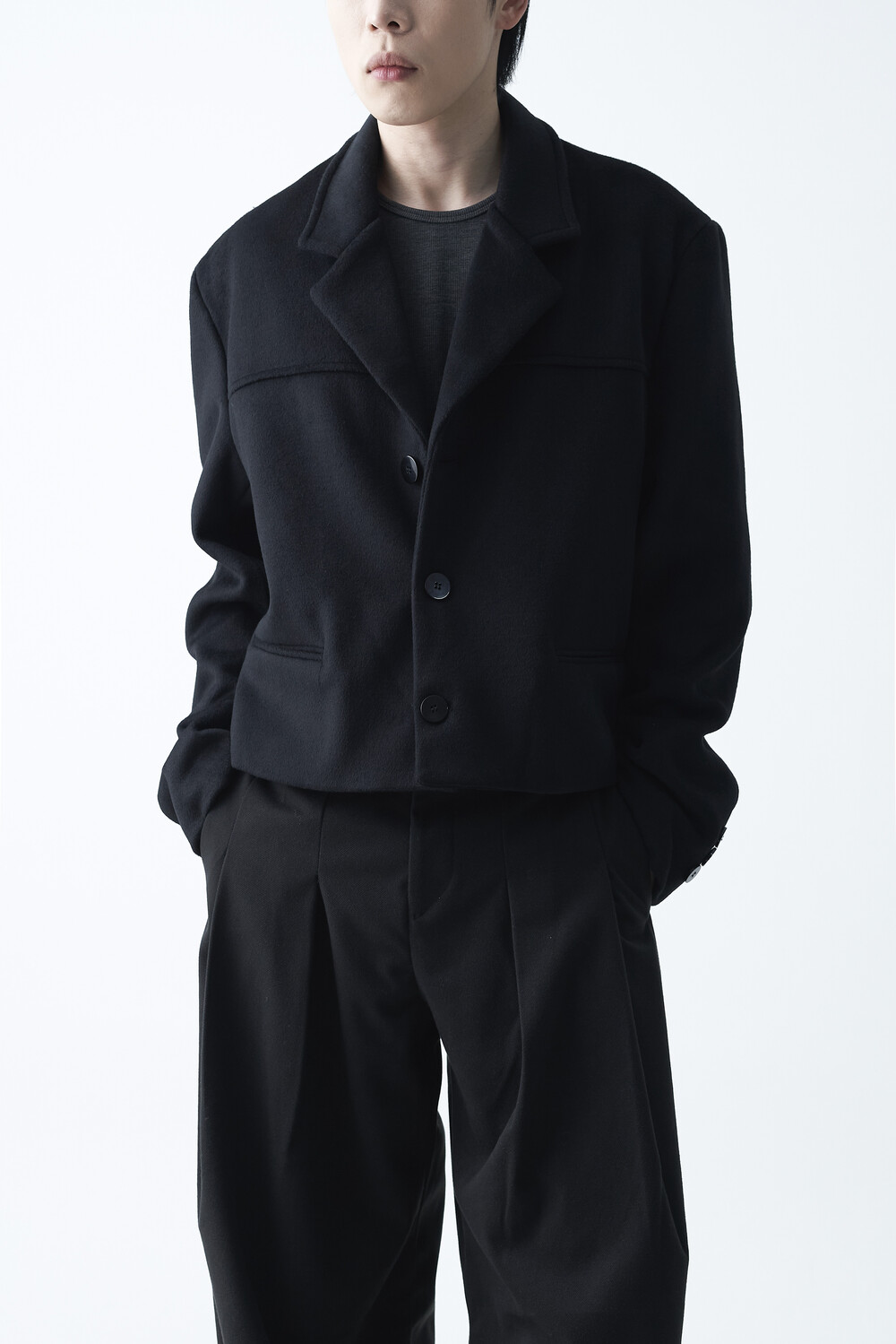 - 크롭한 기장감으로 젠더리스한 매력을 느끼실 수 있는 울 자켓 제품입니다. 동일한 소재감의 슬렉스로 셋업 코디를 하실 수도 있고 여러 팬츠들과 자연스러운 매치가 가능합니다.
