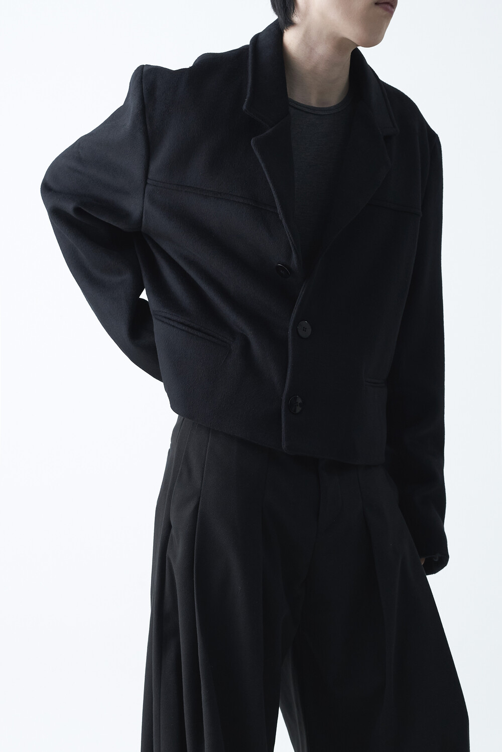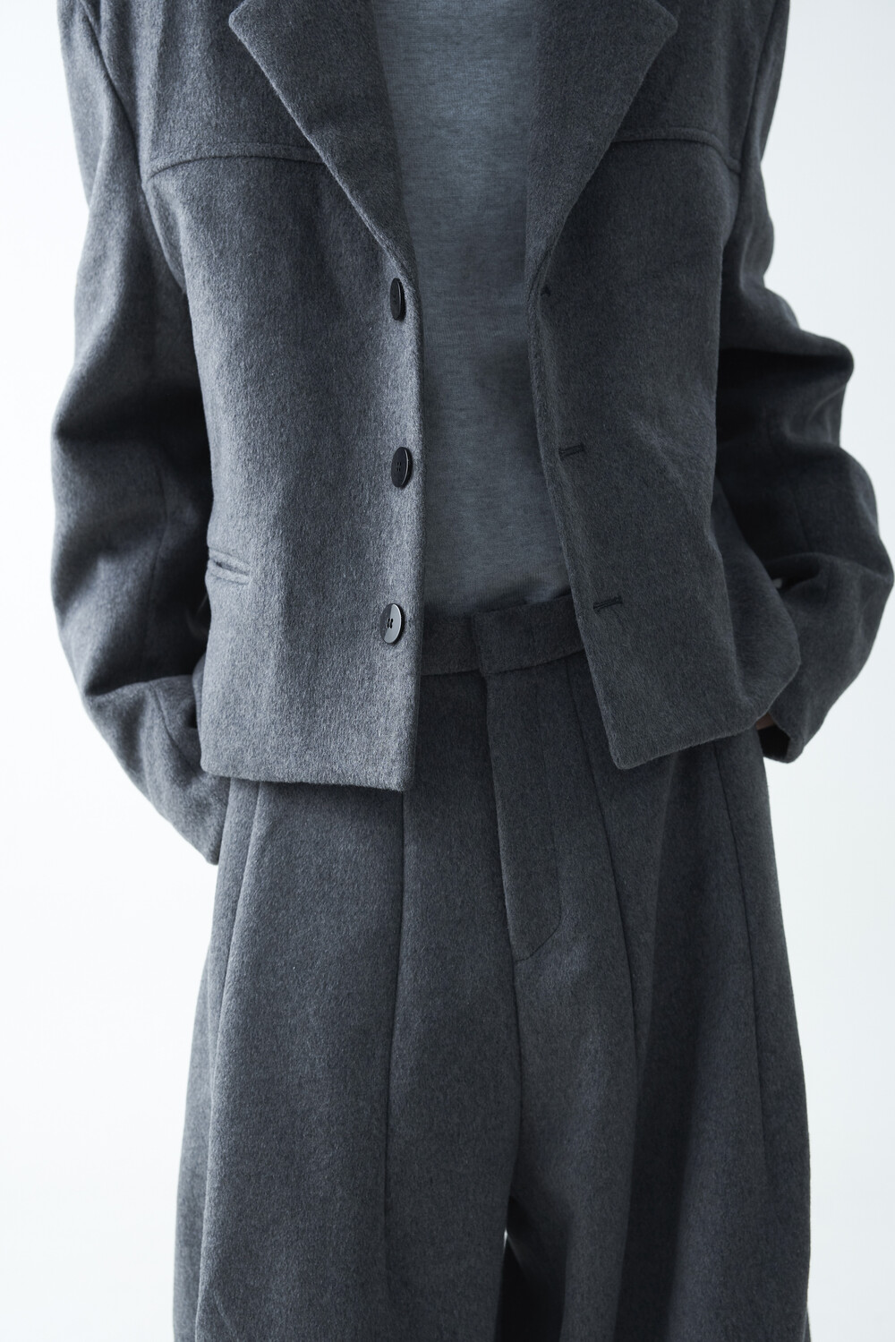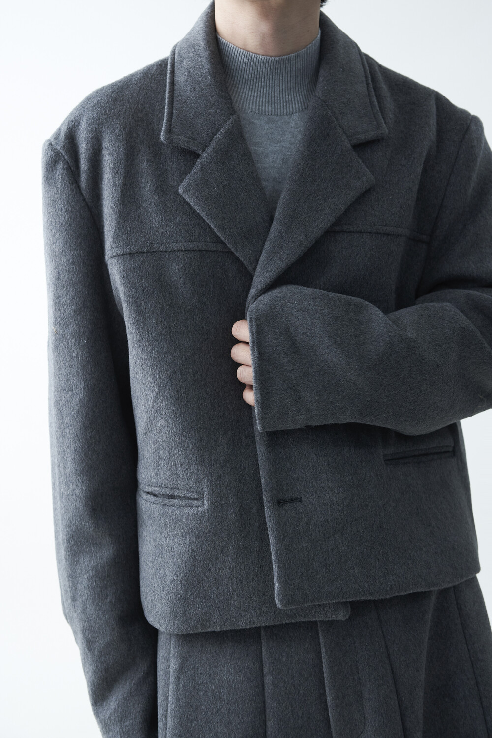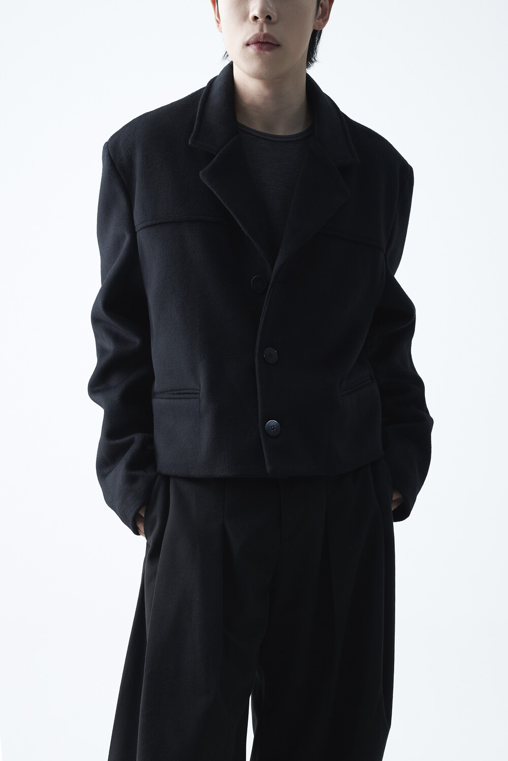 - 크롭한 기장감으로 젠더리스한 매력을 느끼실 수 있는 울 자켓 제품입니다. 동일한 소재감의 슬렉스로 셋업 코디를 하실 수도 있고 여러 팬츠들과 자연스러운 매치가 가능합니다.