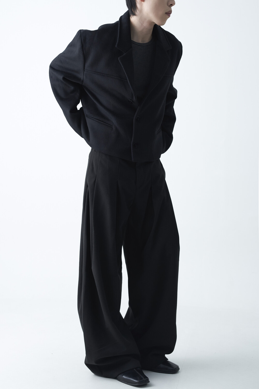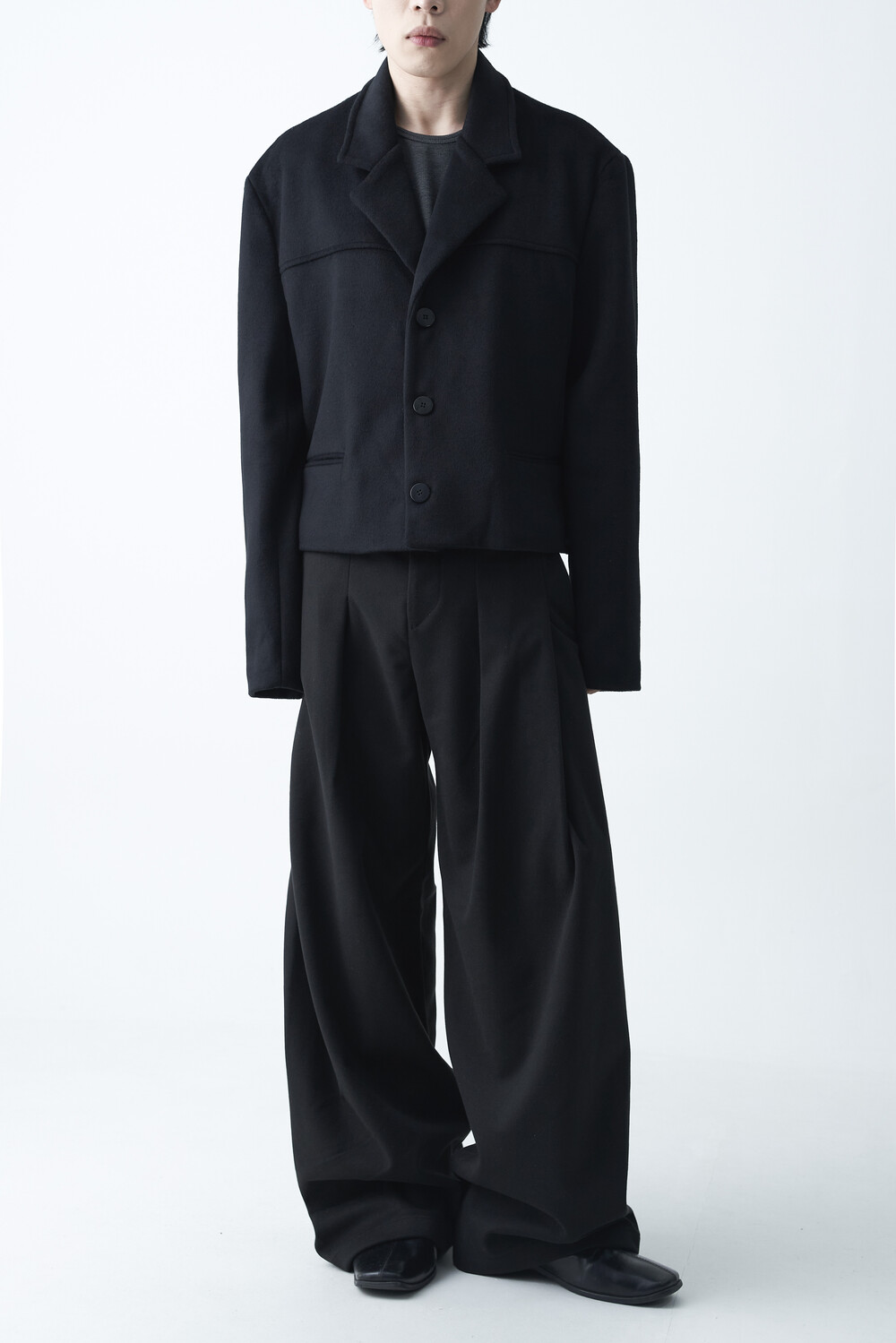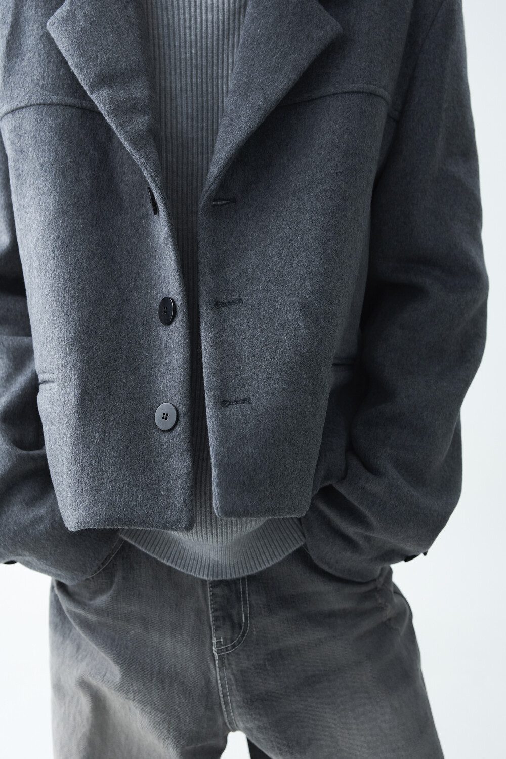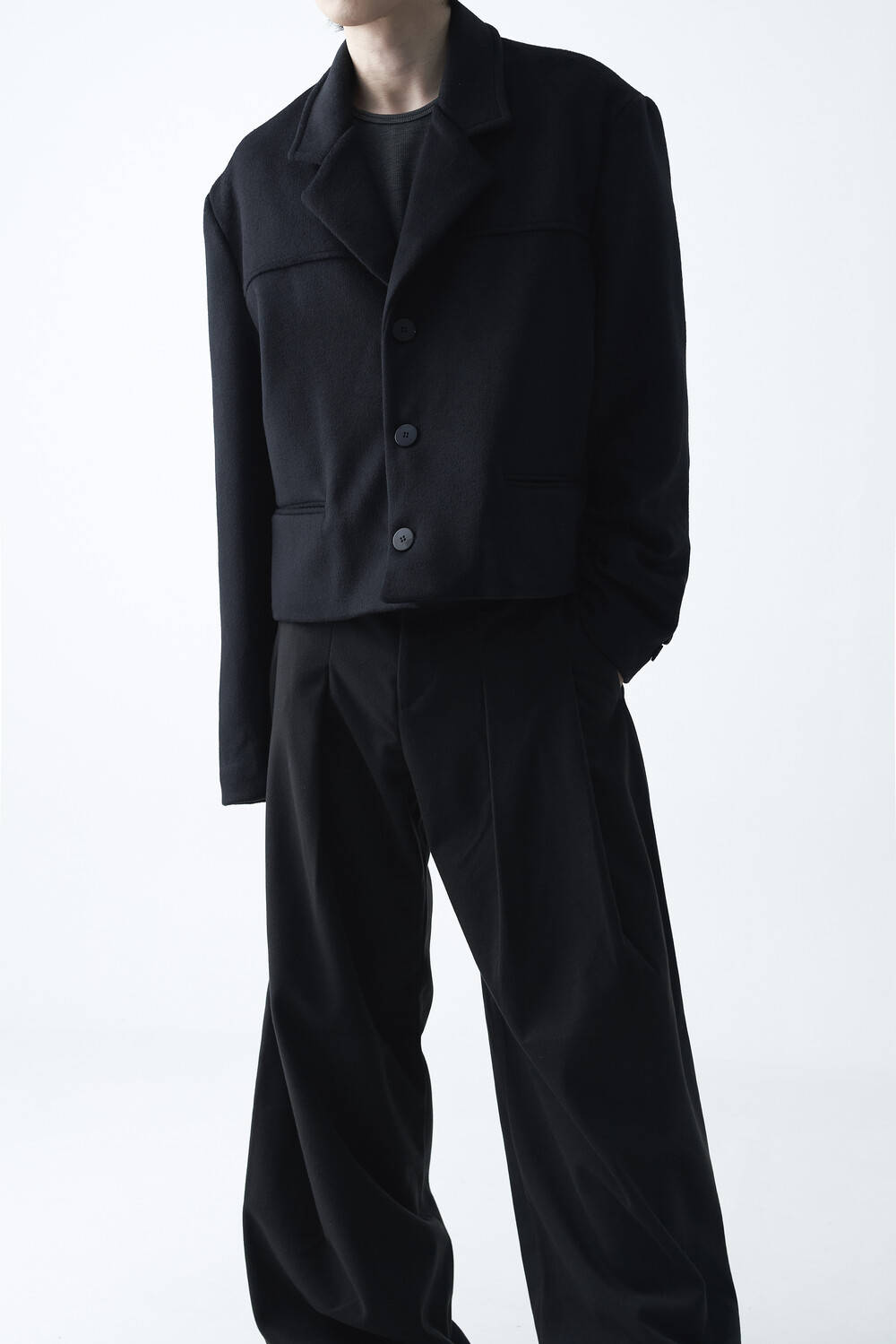 - 크롭한 기장감으로 젠더리스한 매력을 느끼실 수 있는 울 자켓 제품입니다. 동일한 소재감의 슬렉스로 셋업 코디를 하실 수도 있고 여러 팬츠들과 자연스러운 매치가 가능합니다.