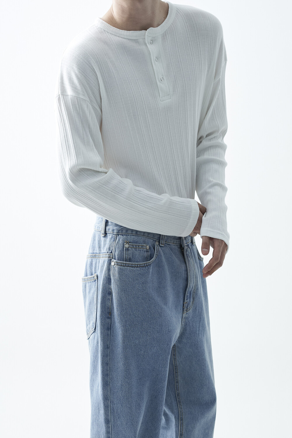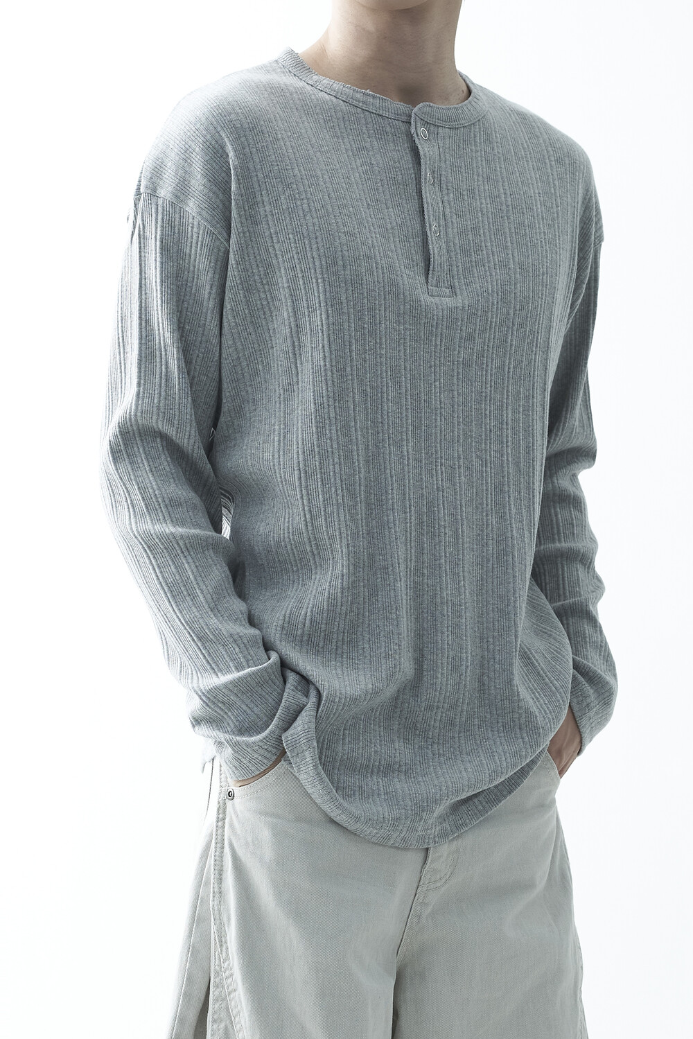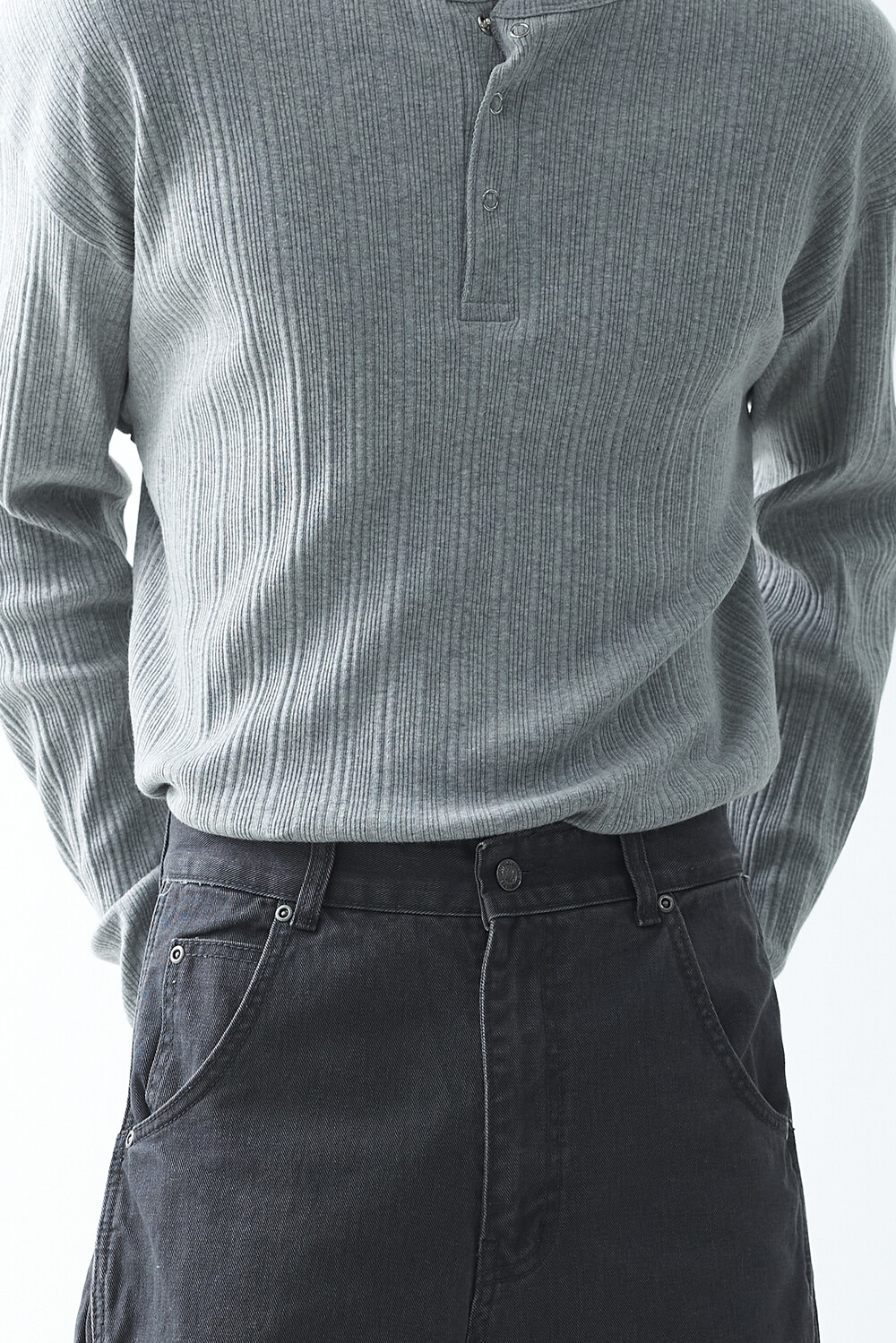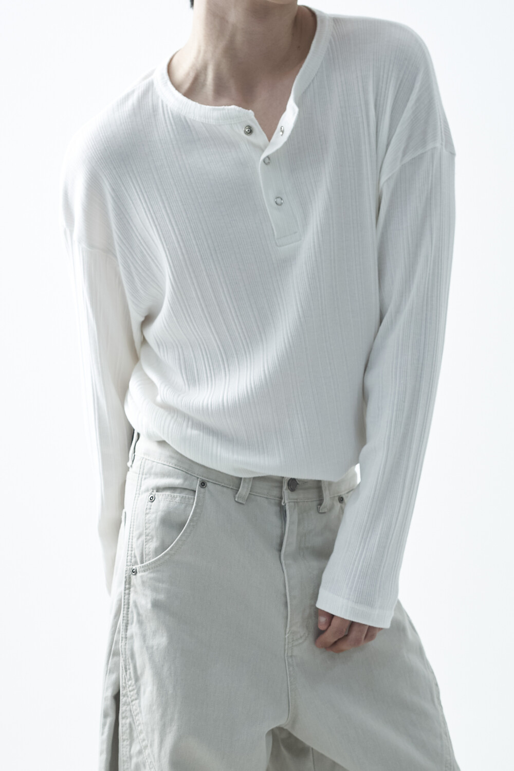 모던한 3버튼 방식의 헨리넥 디자인으로 대부분의 팬츠 제품군들과도 높은 매치포인트를 가지는 제품입니다.