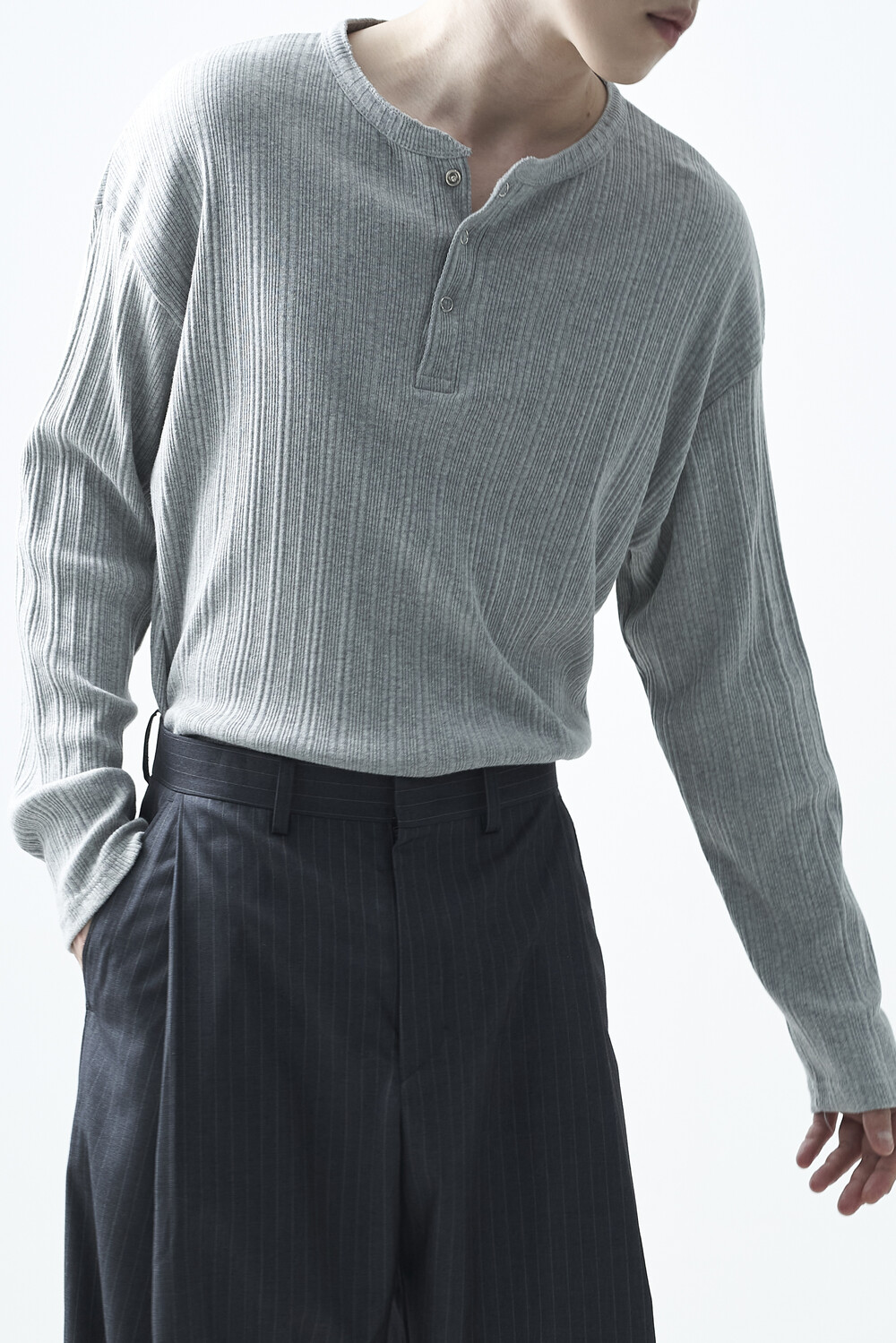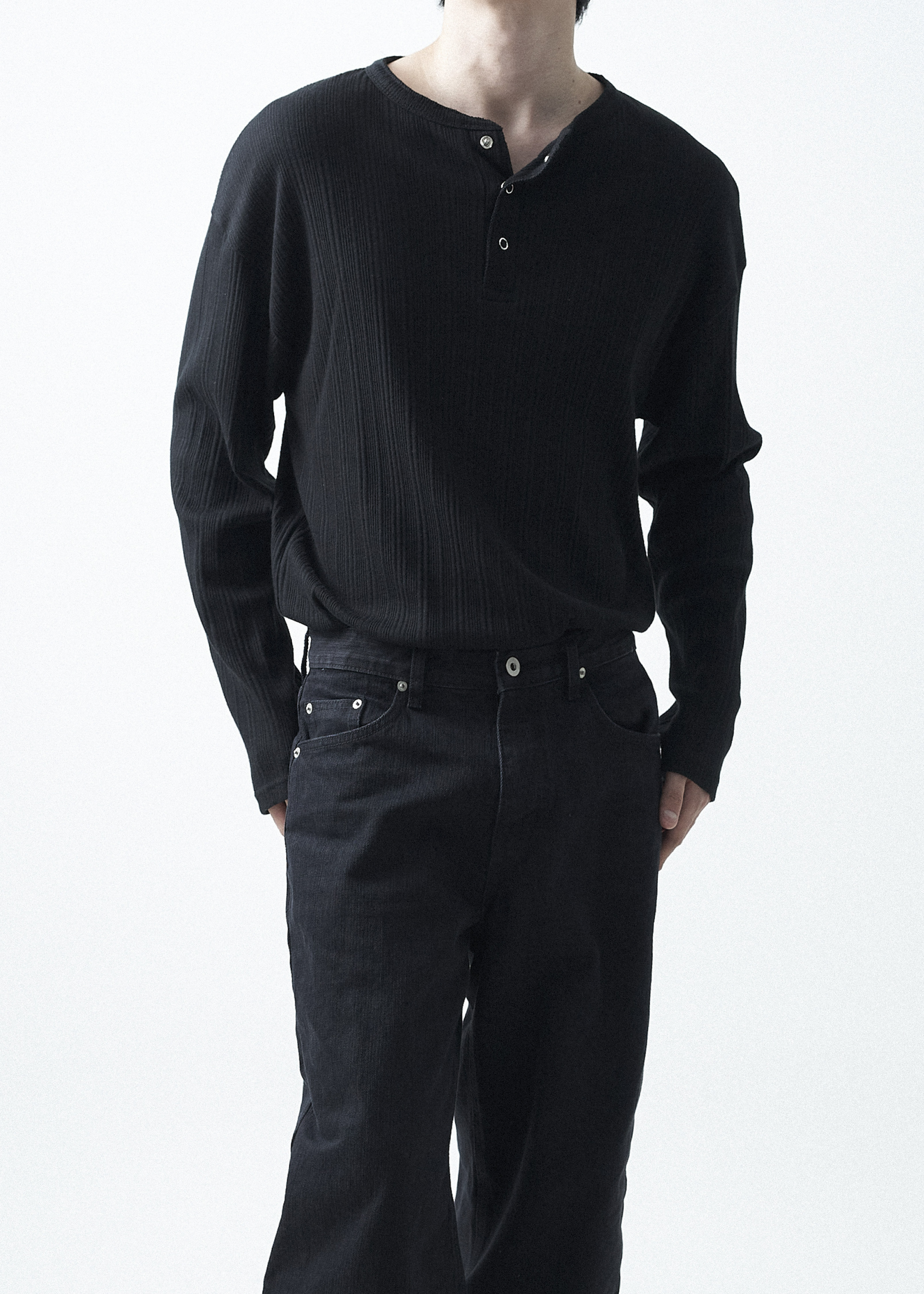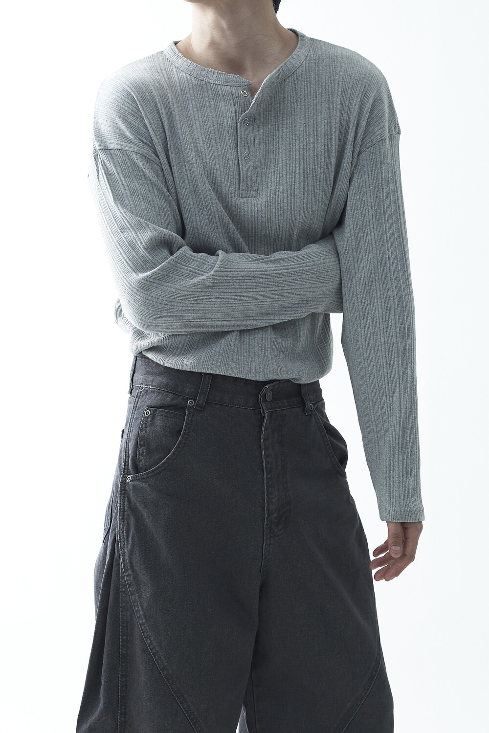 모던한 3버튼 방식의 헨리넥 디자인으로 대부분의 팬츠 제품군들과도 높은 매치포인트를 가지는 제품입니다.