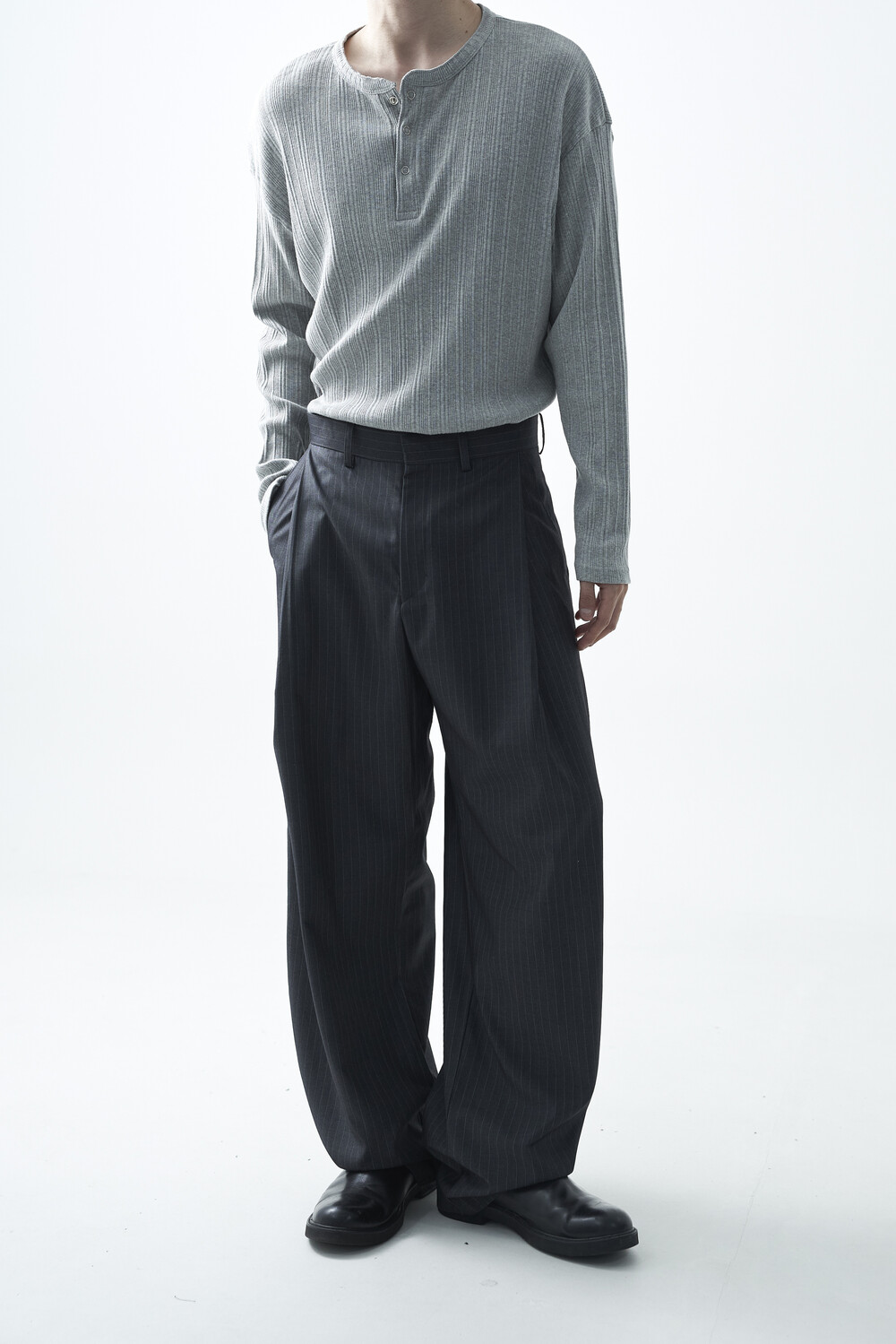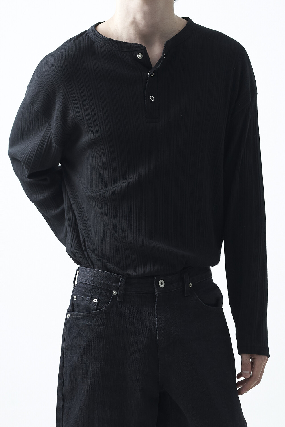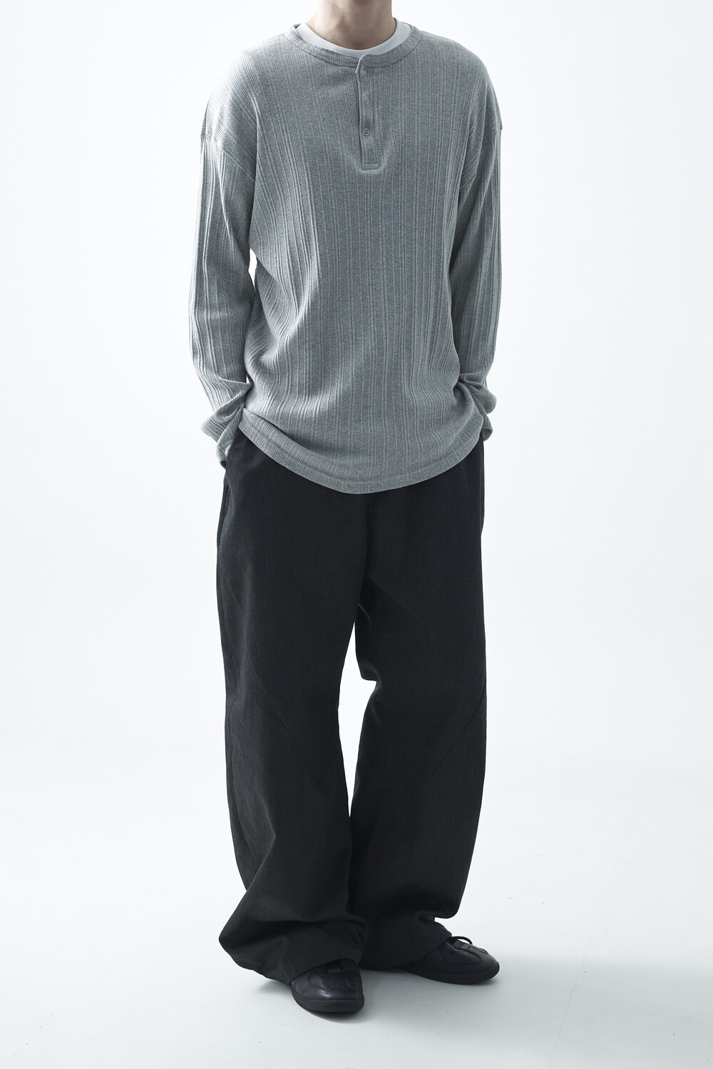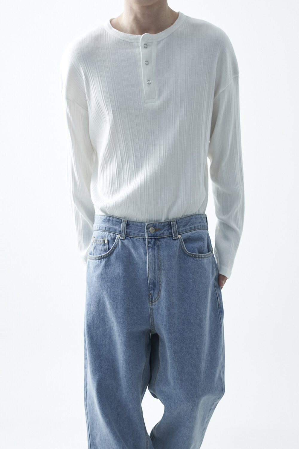 모던한 3버튼 방식의 헨리넥 디자인으로 대부분의 팬츠 제품군들과도 높은 매치포인트를 가지는 제품입니다.