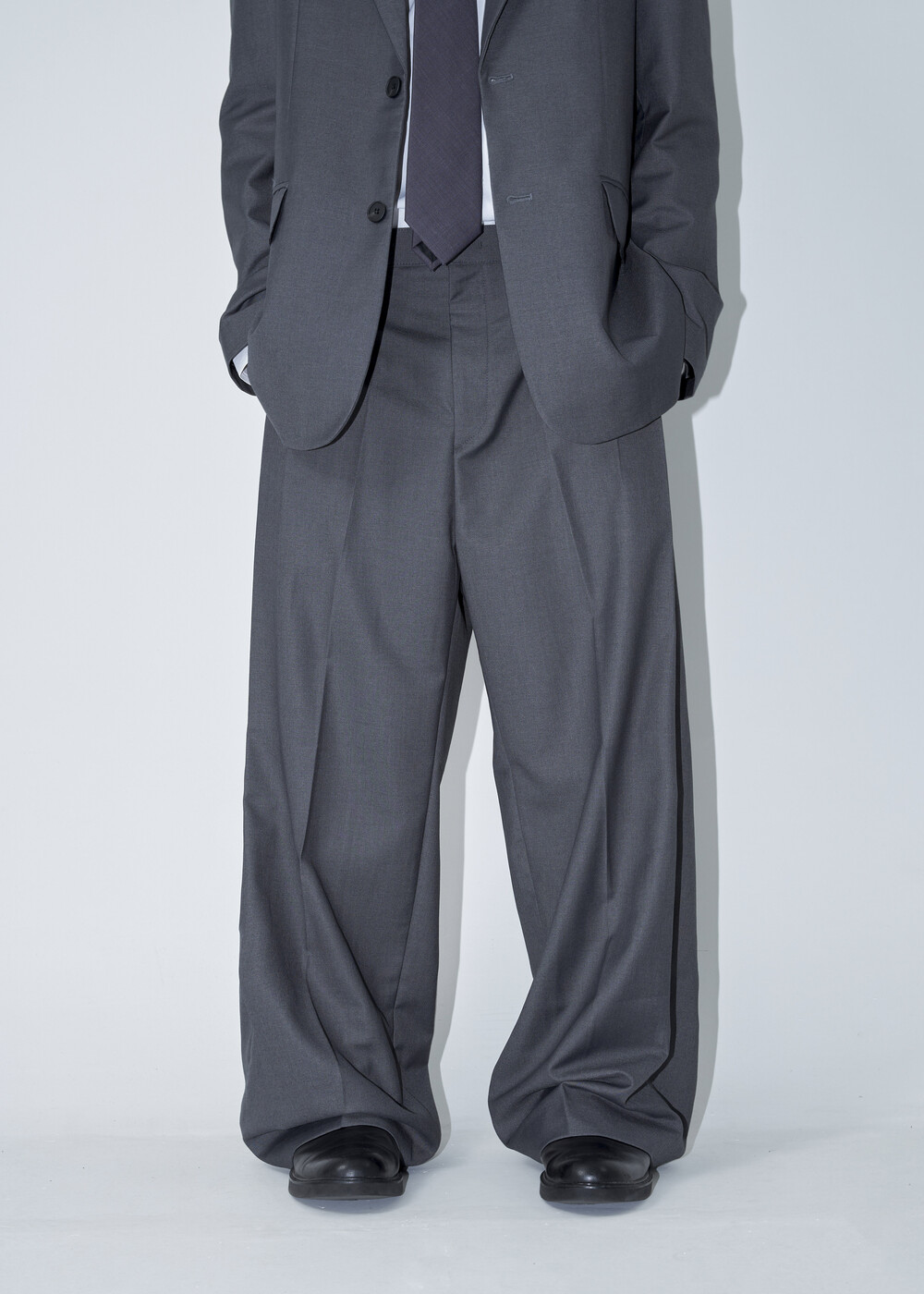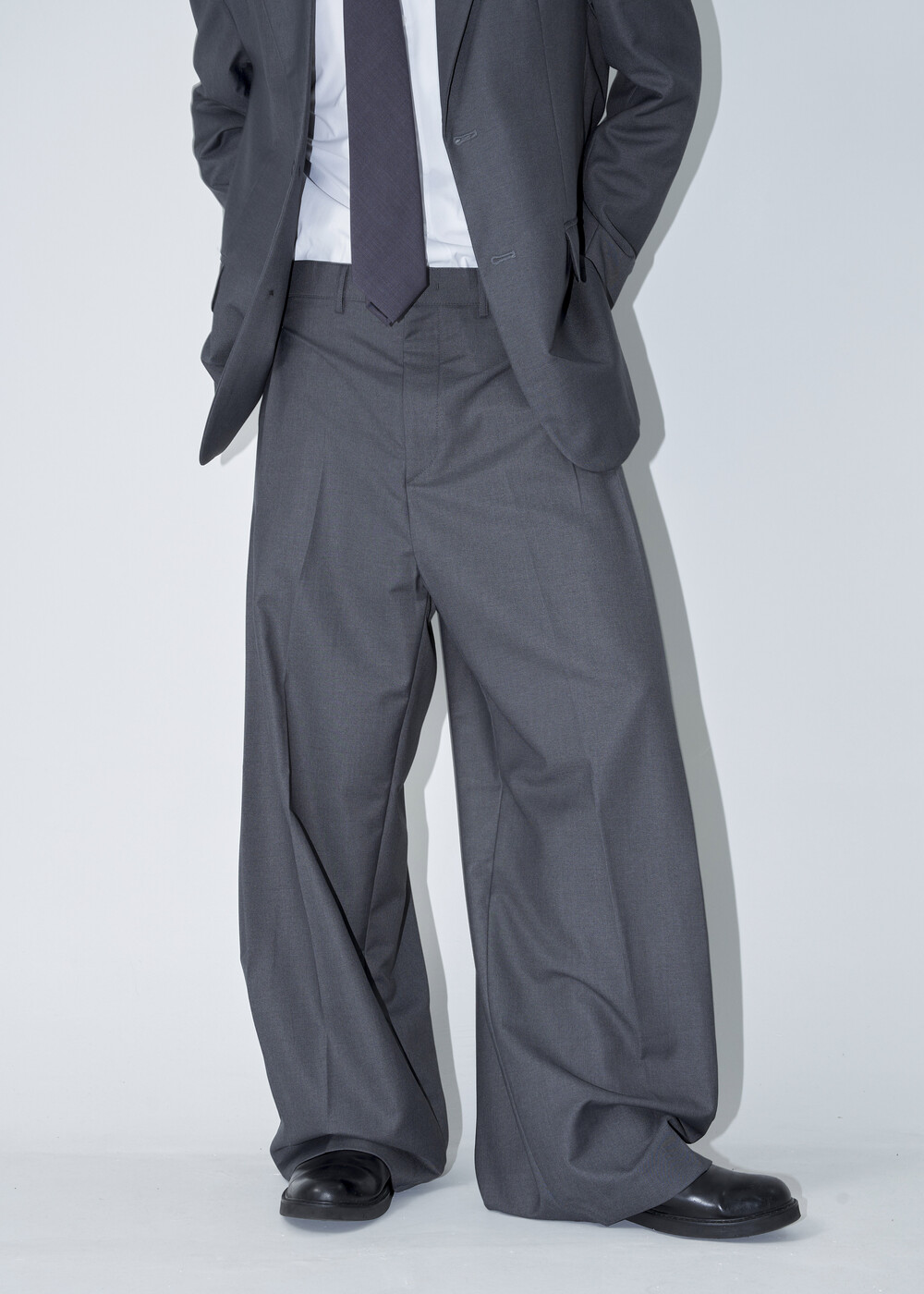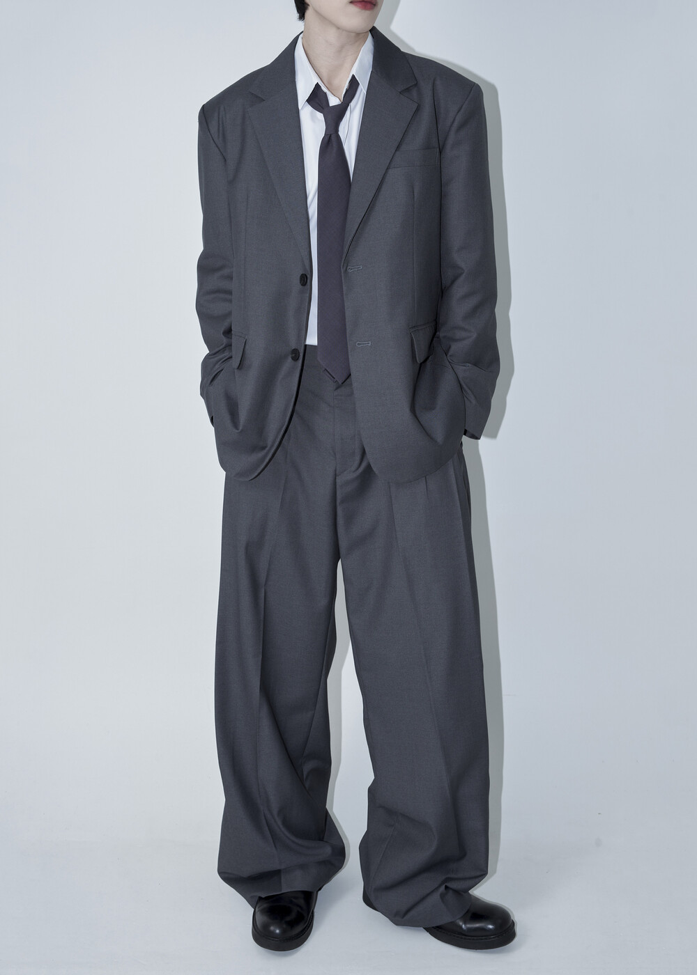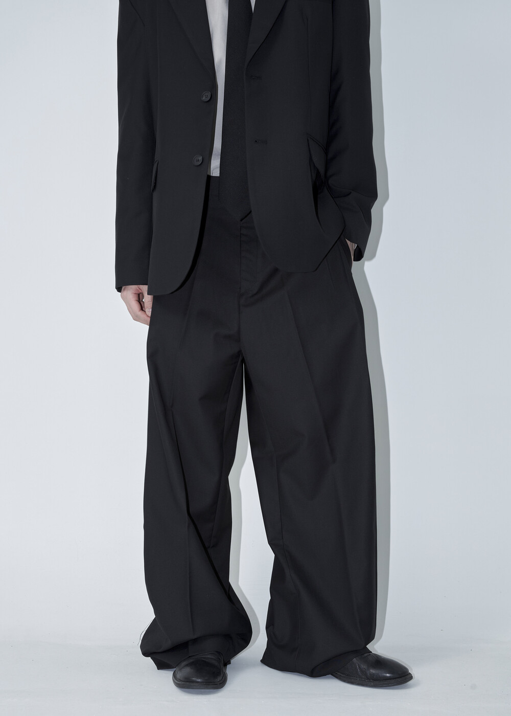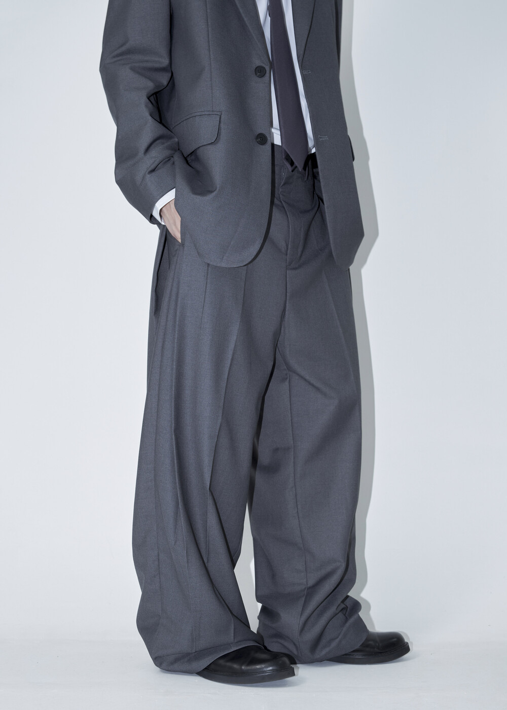 레이온 소재 함유를 통해 보다 고급스러운 터치감을 보여주며 3군데 핀턱을 제외하고서는 디테일을 줄여 깔끔한 와이드 핏을 연출합니다.