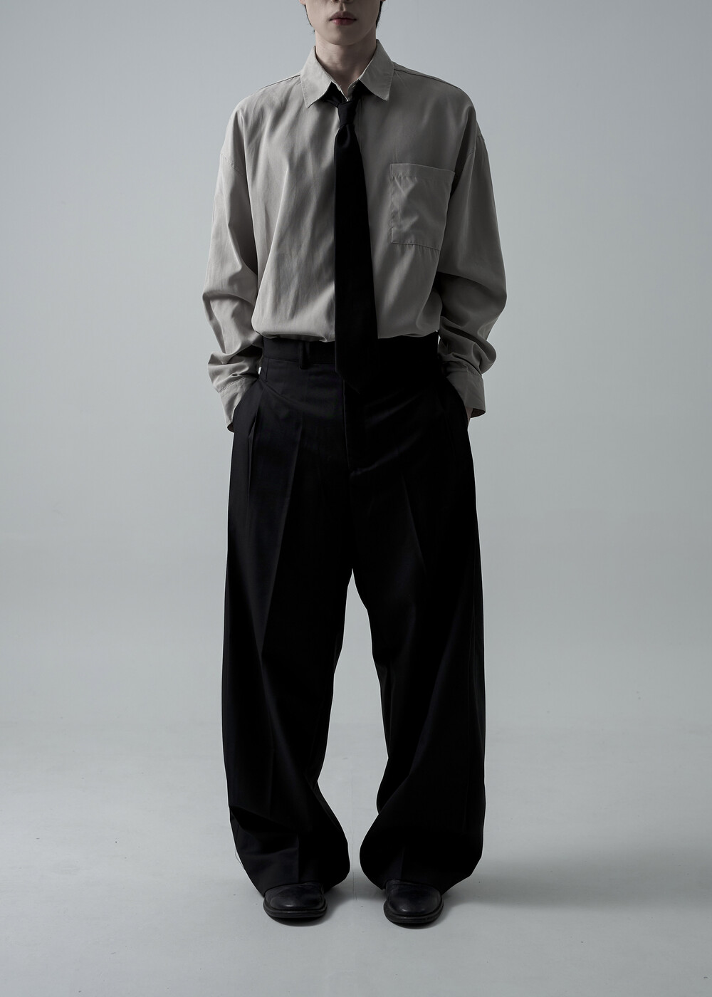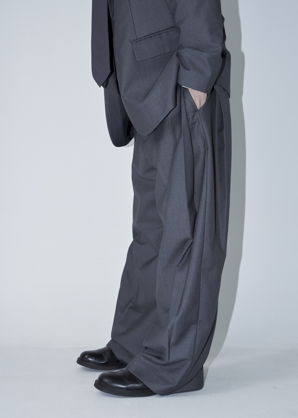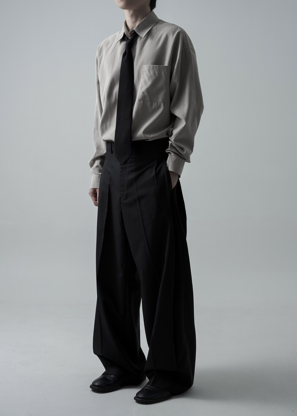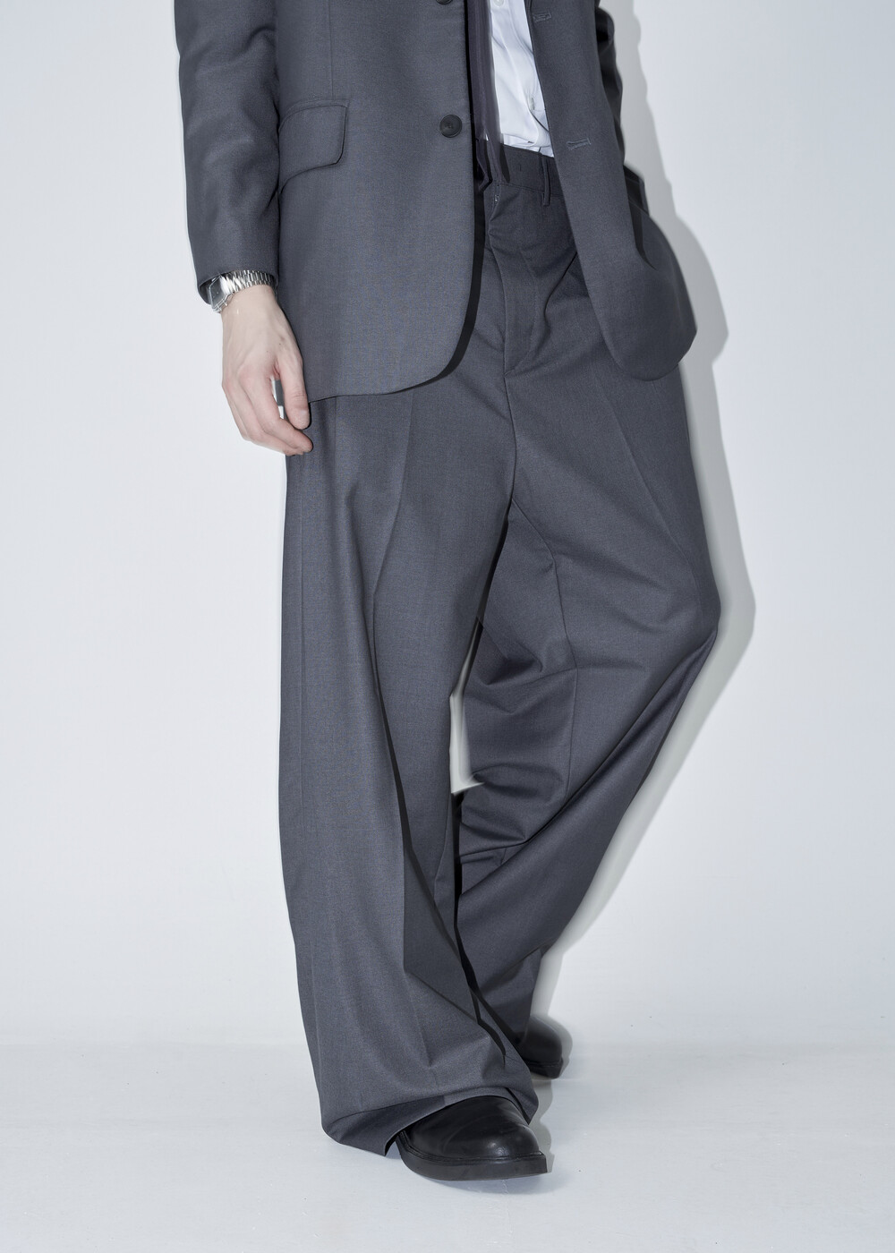 레이온 소재 함유를 통해 보다 고급스러운 터치감을 보여주며 3군데 핀턱을 제외하고서는 디테일을 줄여 깔끔한 와이드 핏을 연출합니다.