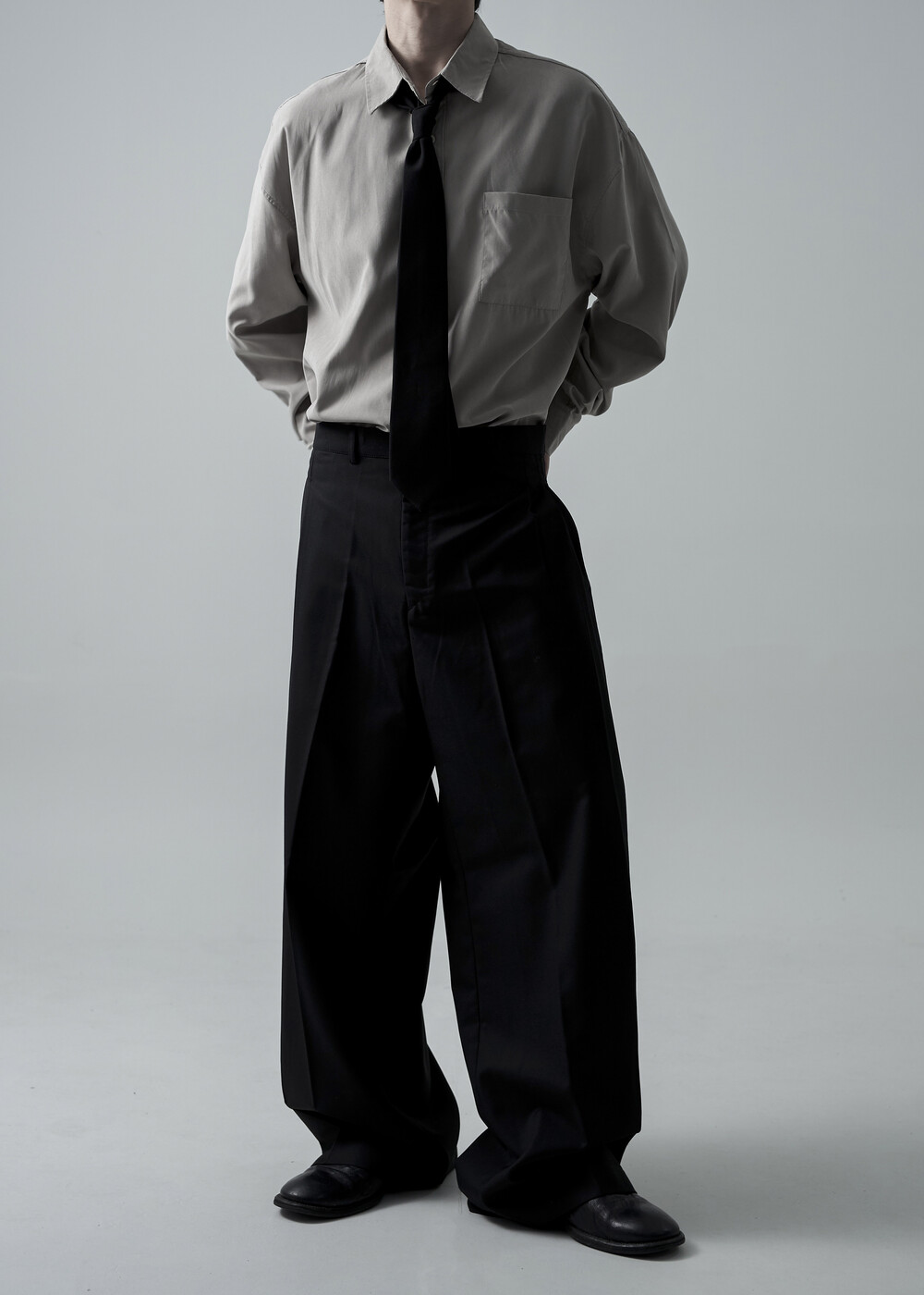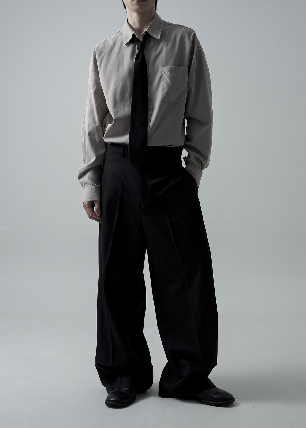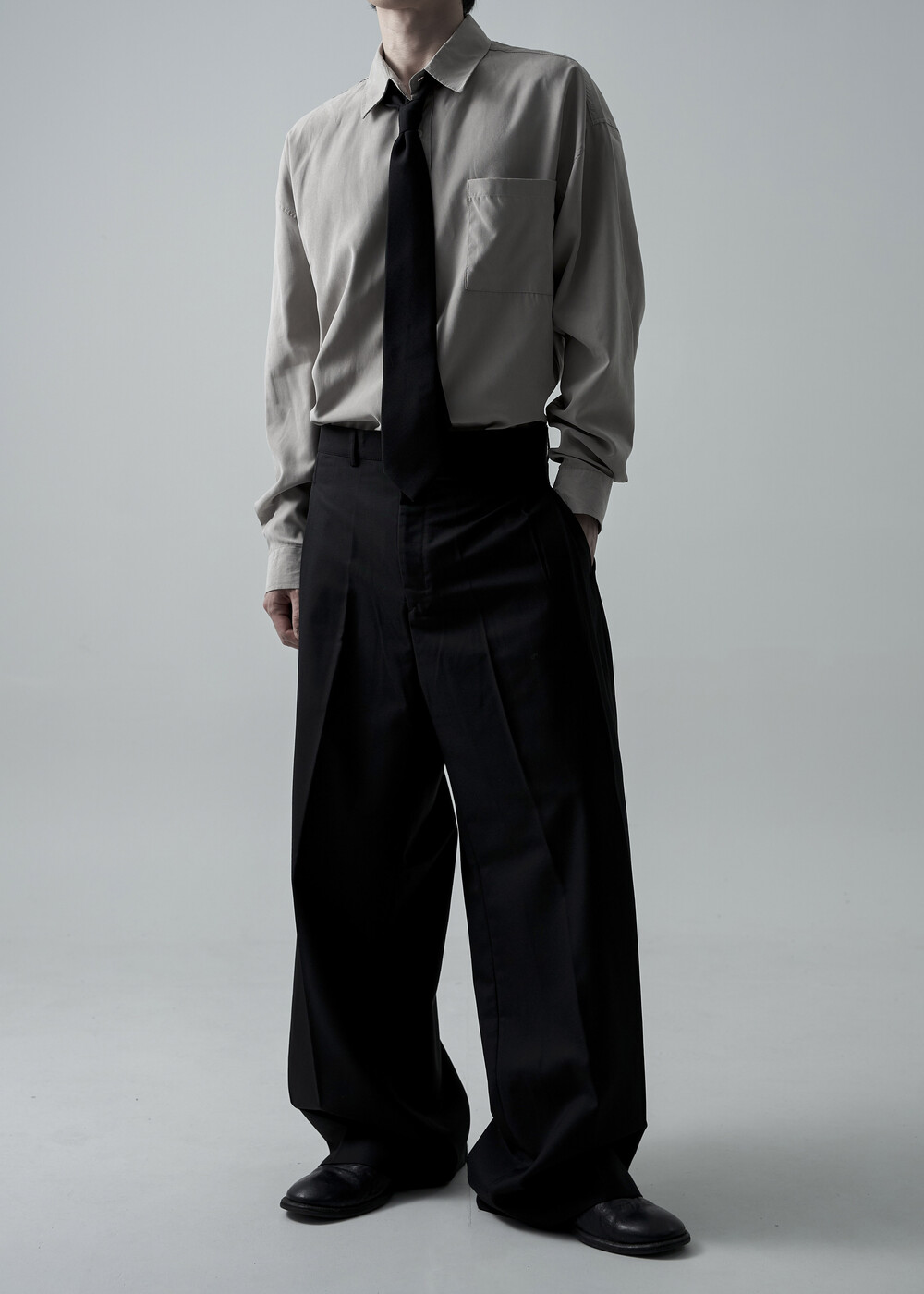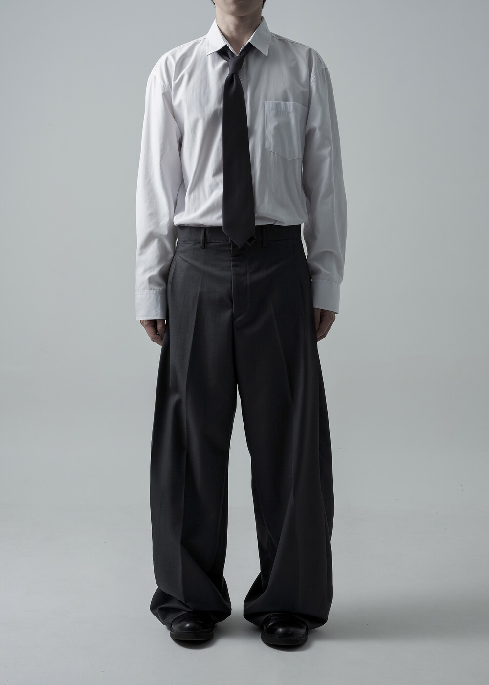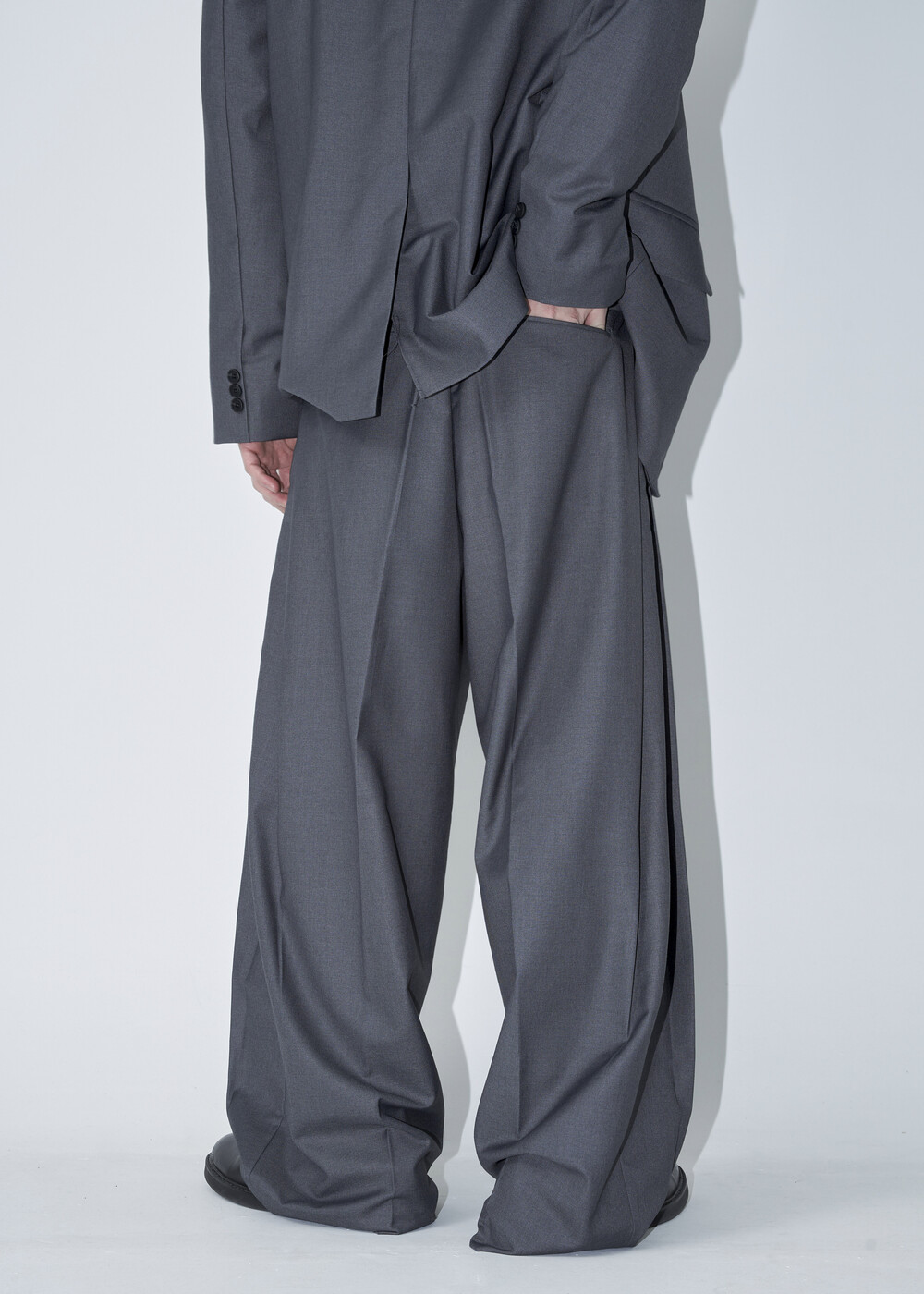 레이온 소재 함유를 통해 보다 고급스러운 터치감을 보여주며 3군데 핀턱을 제외하고서는 디테일을 줄여 깔끔한 와이드 핏을 연출합니다.