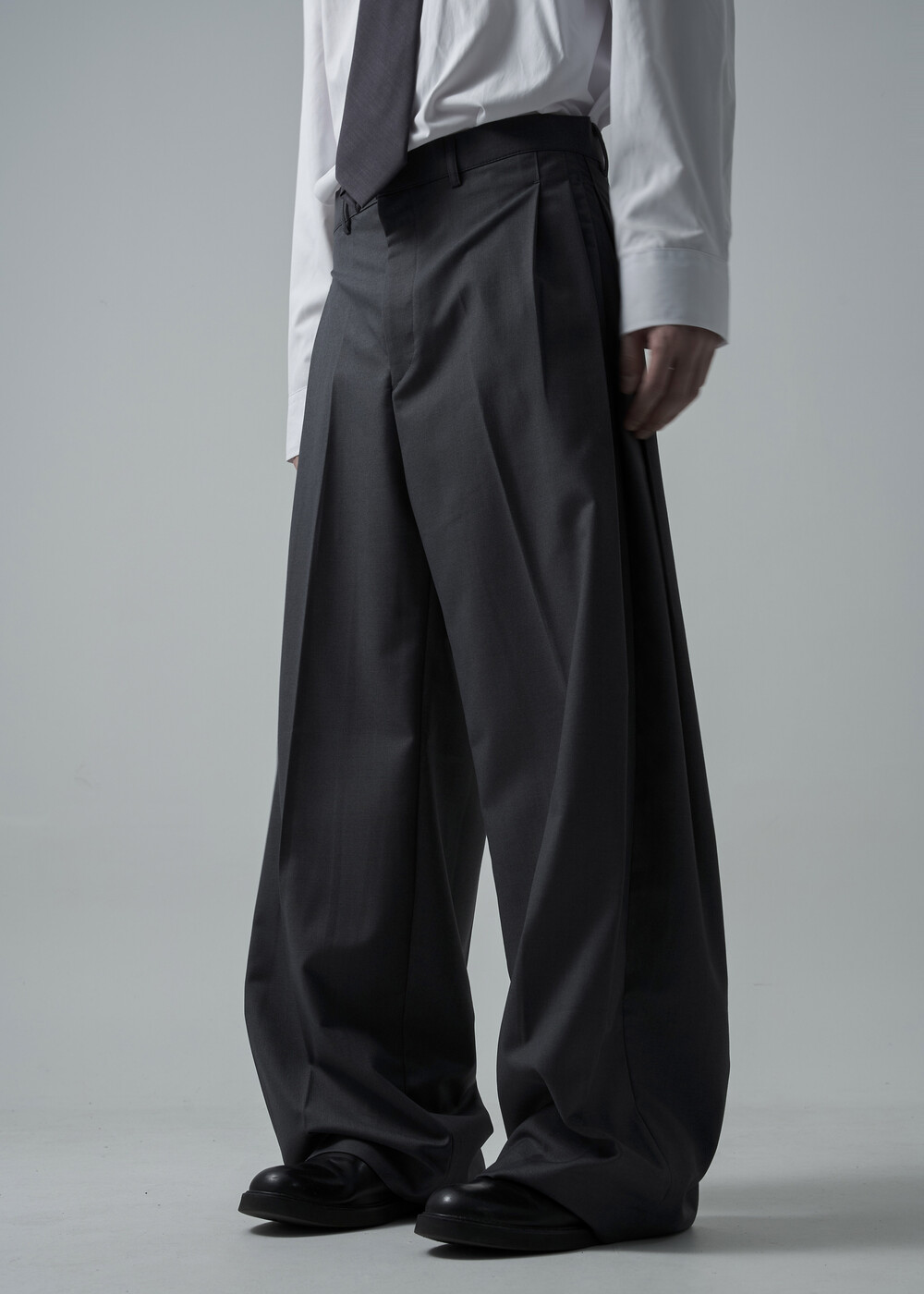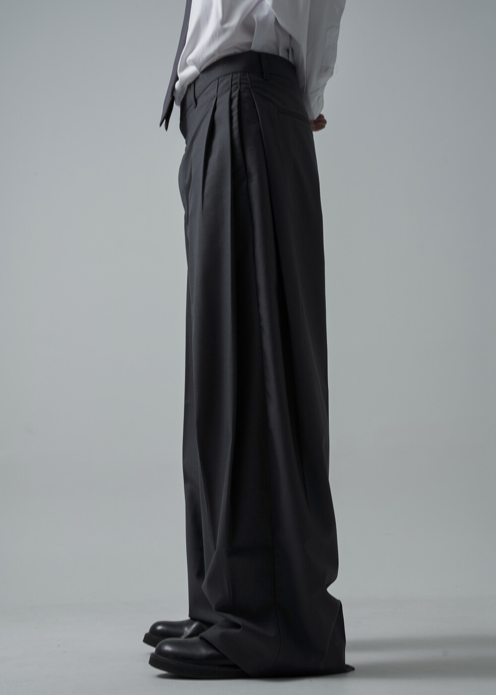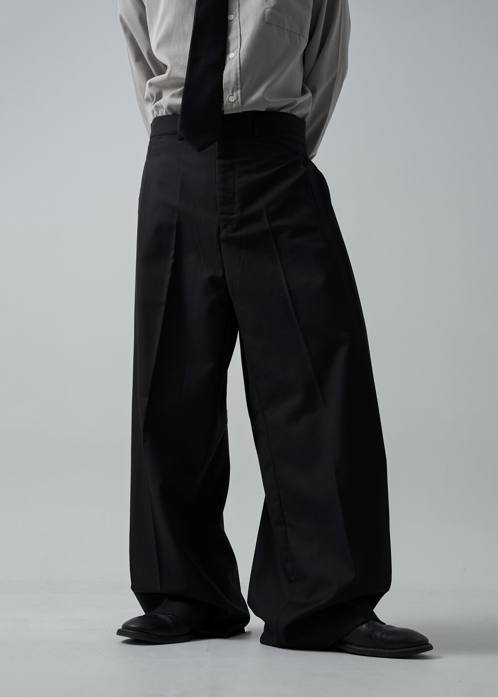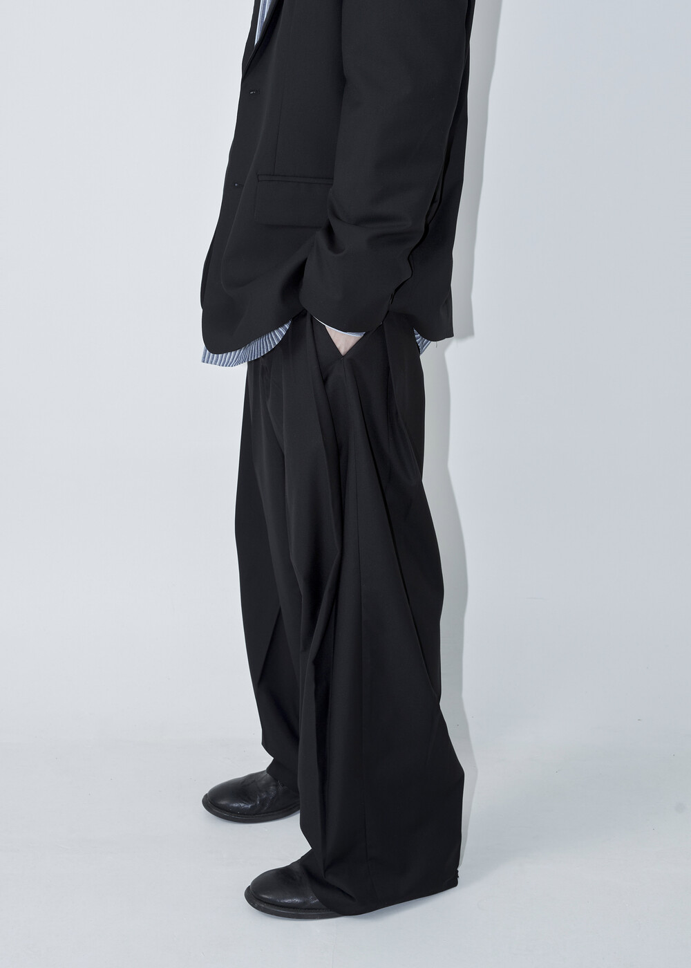 - 전면부 투 핀턱, 후면부 원핀턱을 중심으로 흐르는 듯한 실루엣을 연출하는 와이드 슬렉스 제품,