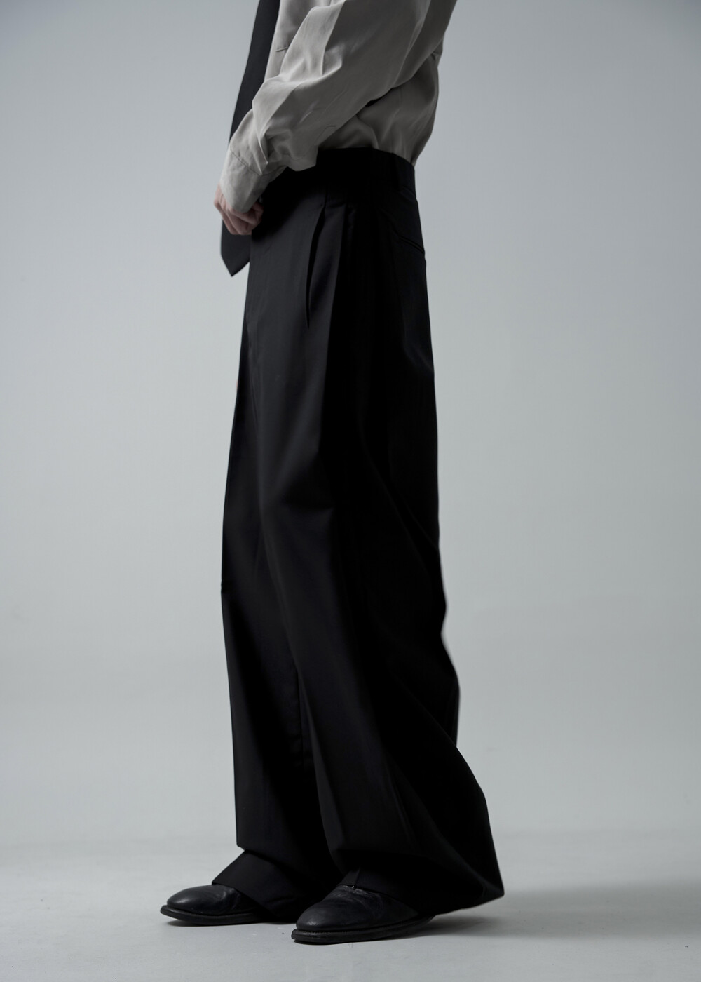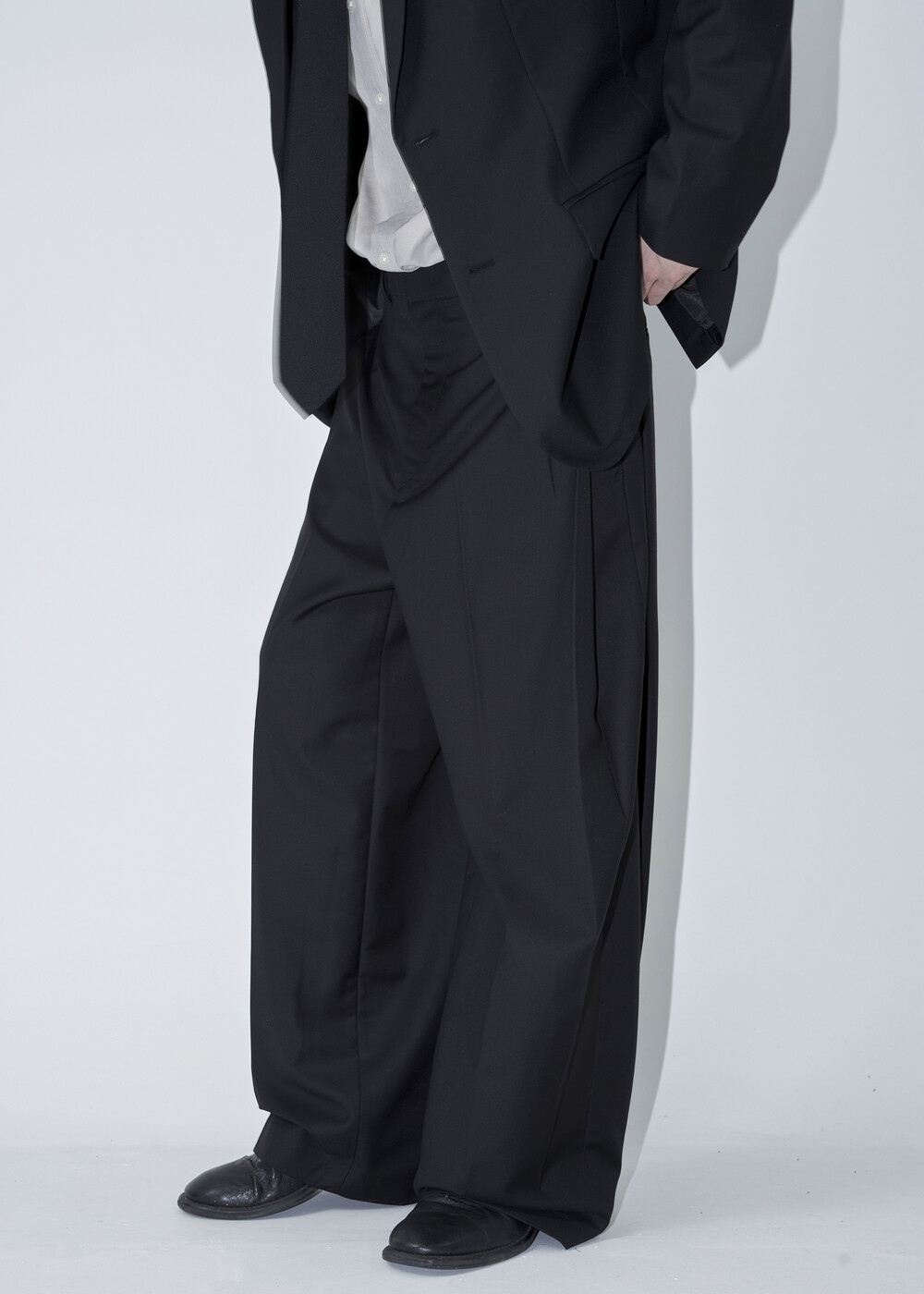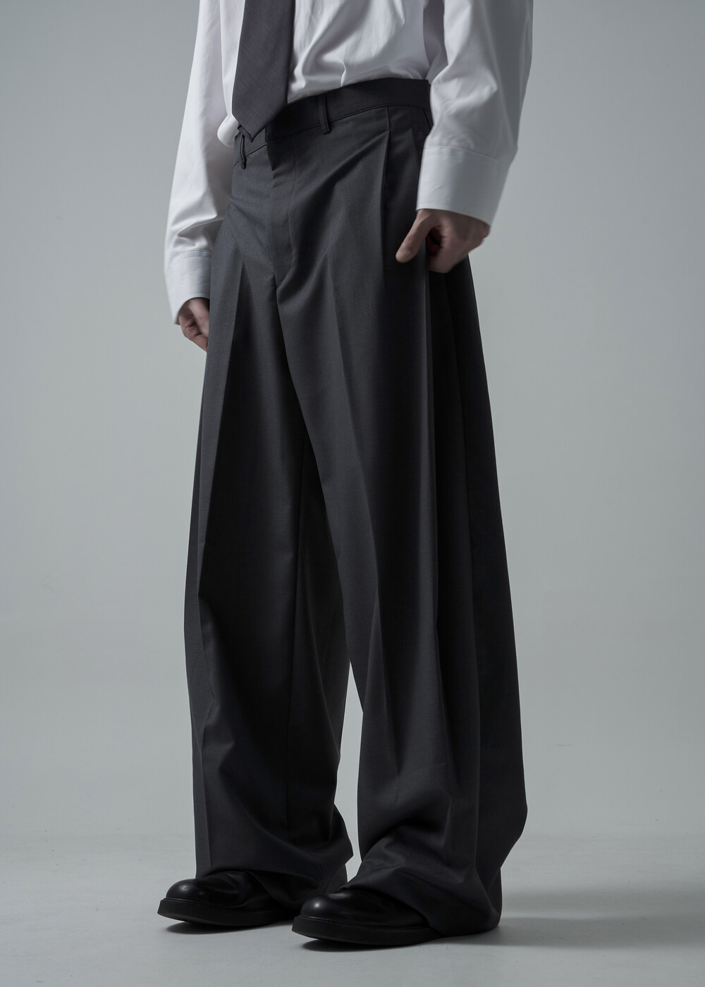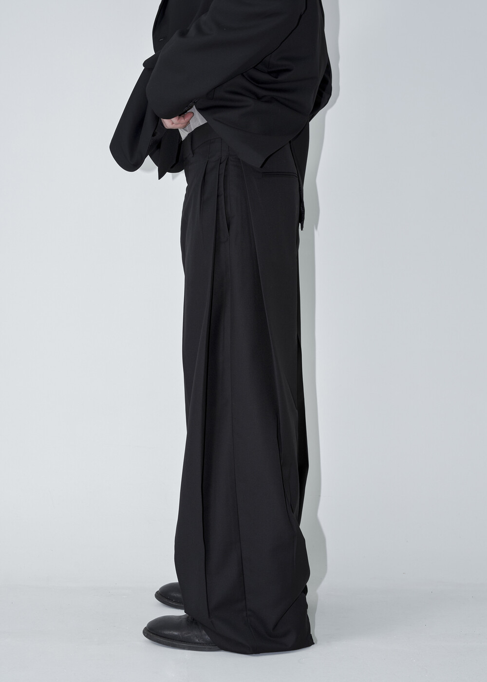 - 전면부 투 핀턱, 후면부 원핀턱을 중심으로 흐르는 듯한 실루엣을 연출하는 와이드 슬렉스 제품,