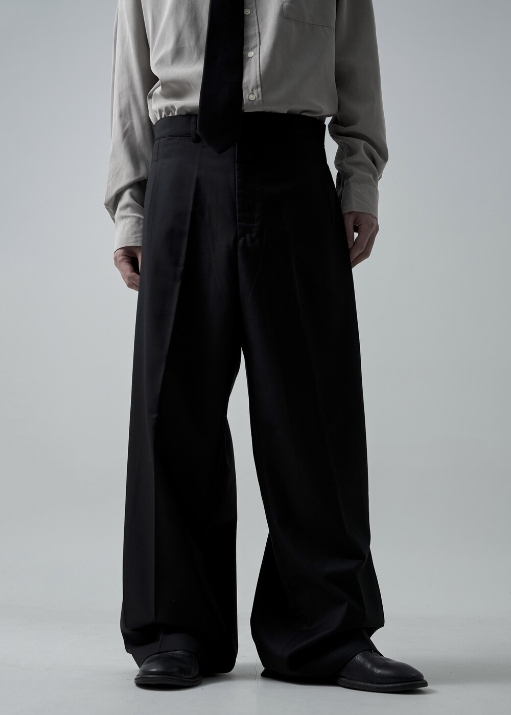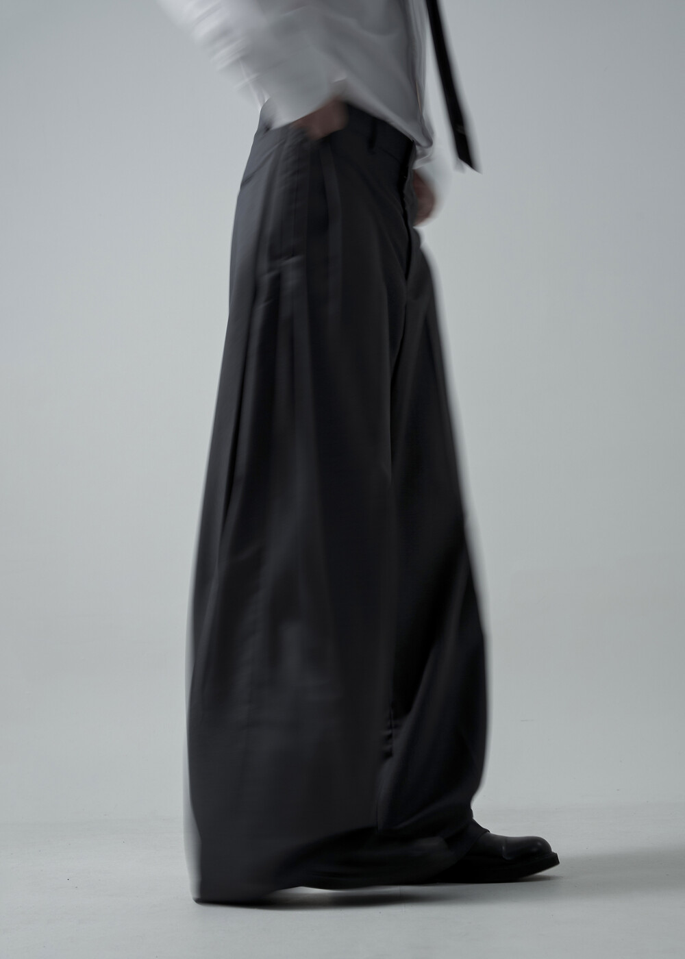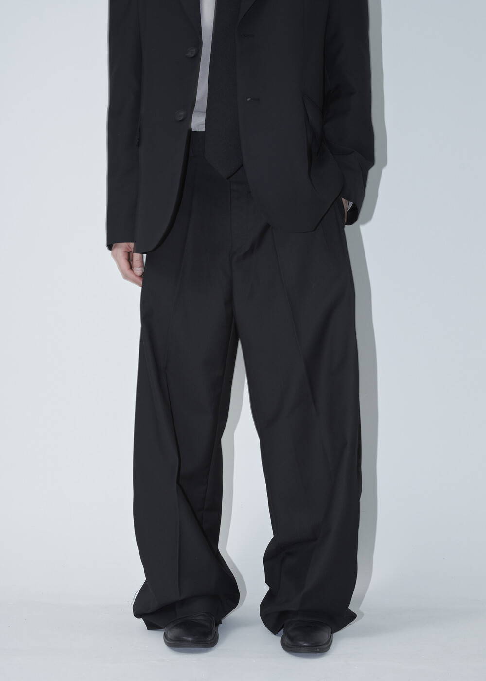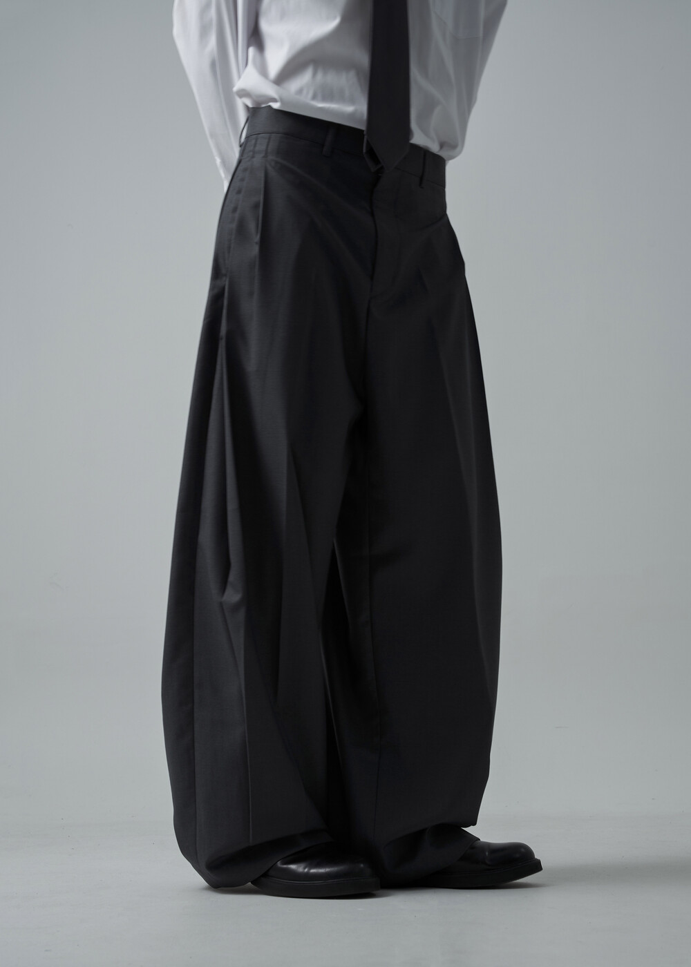 - 전면부 투 핀턱, 후면부 원핀턱을 중심으로 흐르는 듯한 실루엣을 연출하는 와이드 슬렉스 제품,
