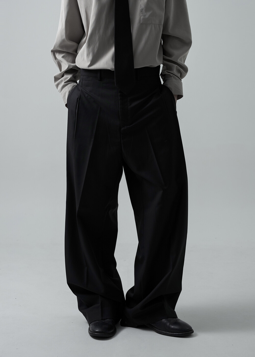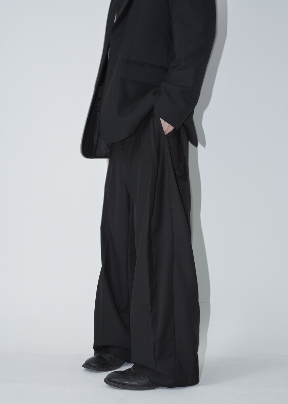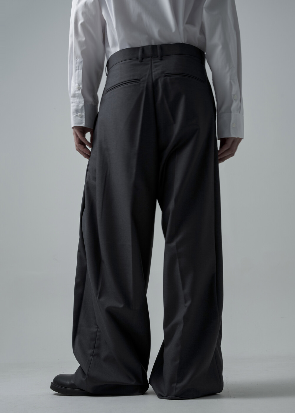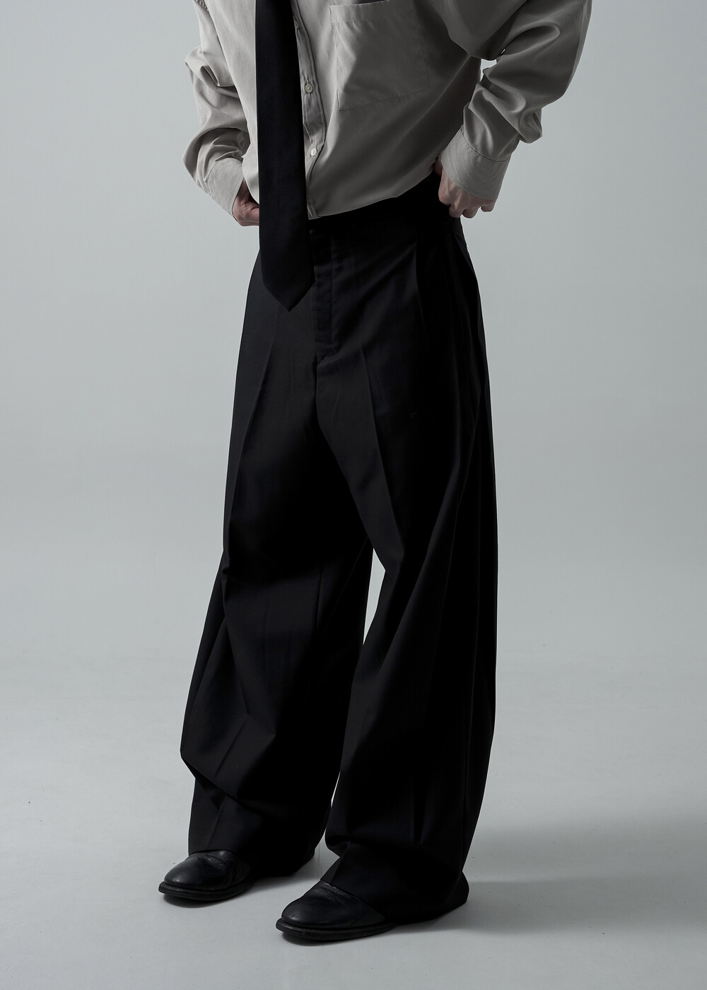- 전면부 투 핀턱, 후면부 원핀턱을 중심으로 흐르는 듯한 실루엣을 연출하는 와이드 슬렉스 제품,