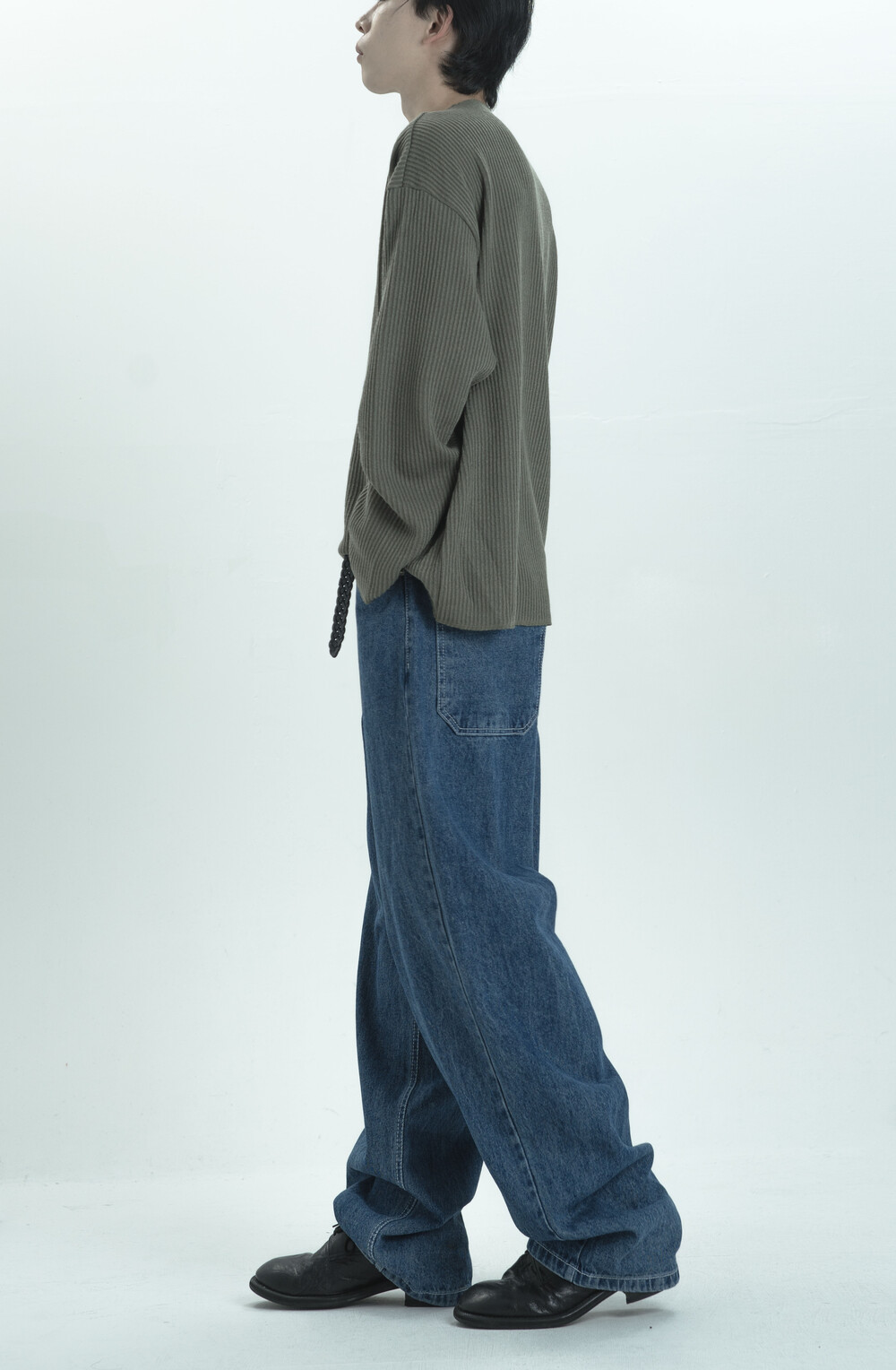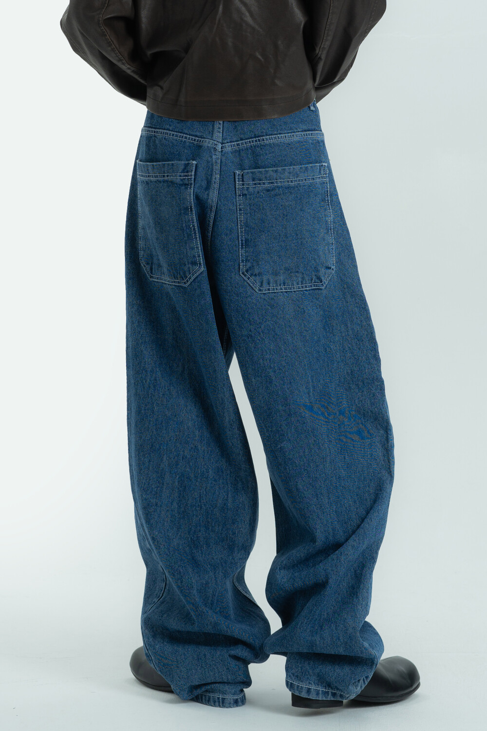 - 현 트렌드에 걸맞는 Y2K 스타일을 현대적으로 재해석하여 제작된 오버와이드 데님 팬츠 제품으로 오버한 사이즈감에 비해 적절한 허리 사이즈로 제작되었습니다. 그로인해 남녀구분 없이 세가지 사이즈를 통해 안정적인 착용이 가능하며, 미니멀, 캐쥬얼 등 다양한 코디 연출이 용이합니다.